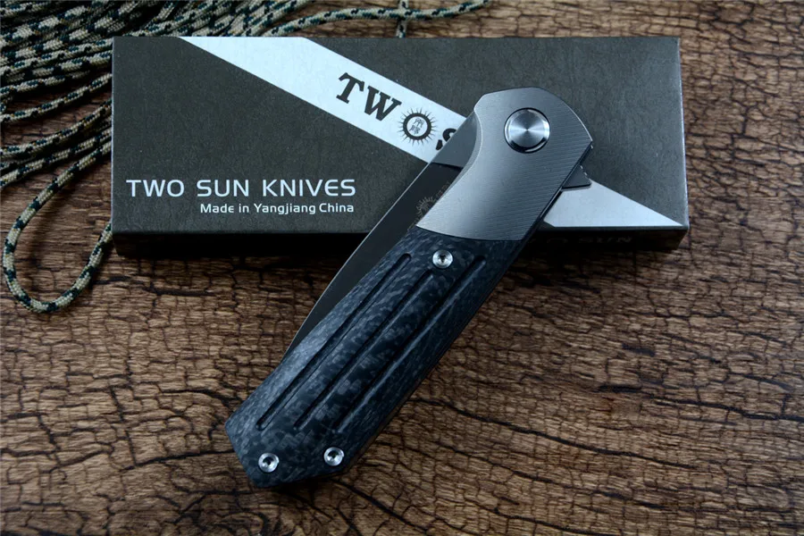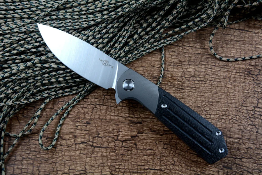 Складной карманный нож Twosun TS223 M390, практичный подарок, охота, кемпинг, выживание на природе, титановая ручка из углеродного волокна