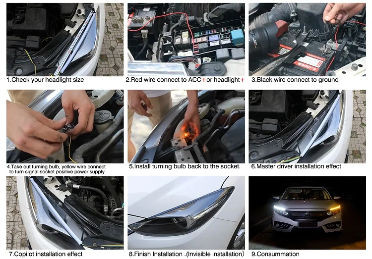 Светодиодная лента наклейка на фары автомобиля для дневных ходовых ...