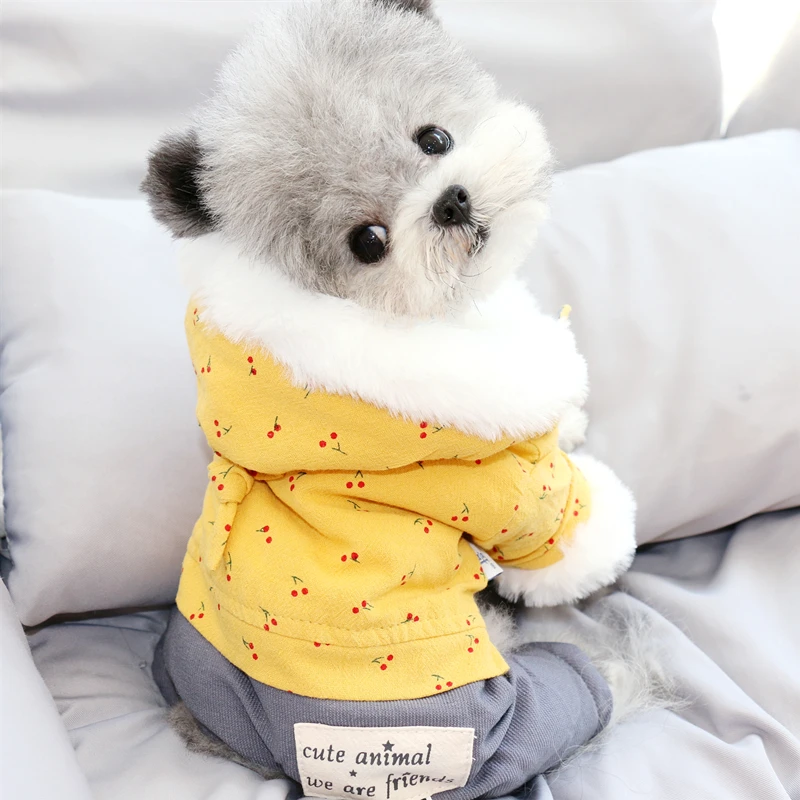 Теплая одежда для собак с меховым воротником, наряд для щенков, для...