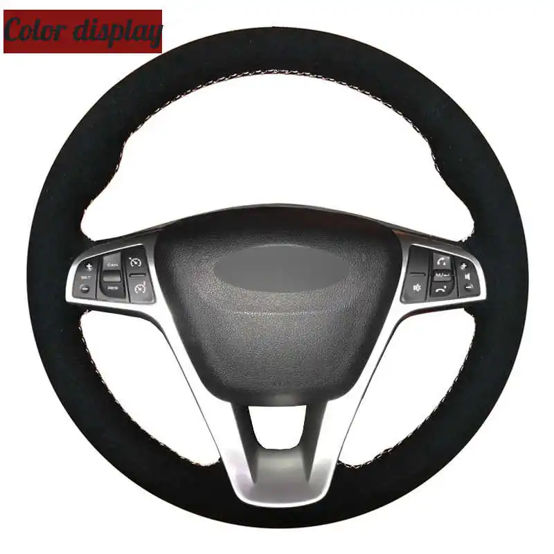 DIY сшитый вручную замшевый чехол рулевого колеса автомобиля из нат...