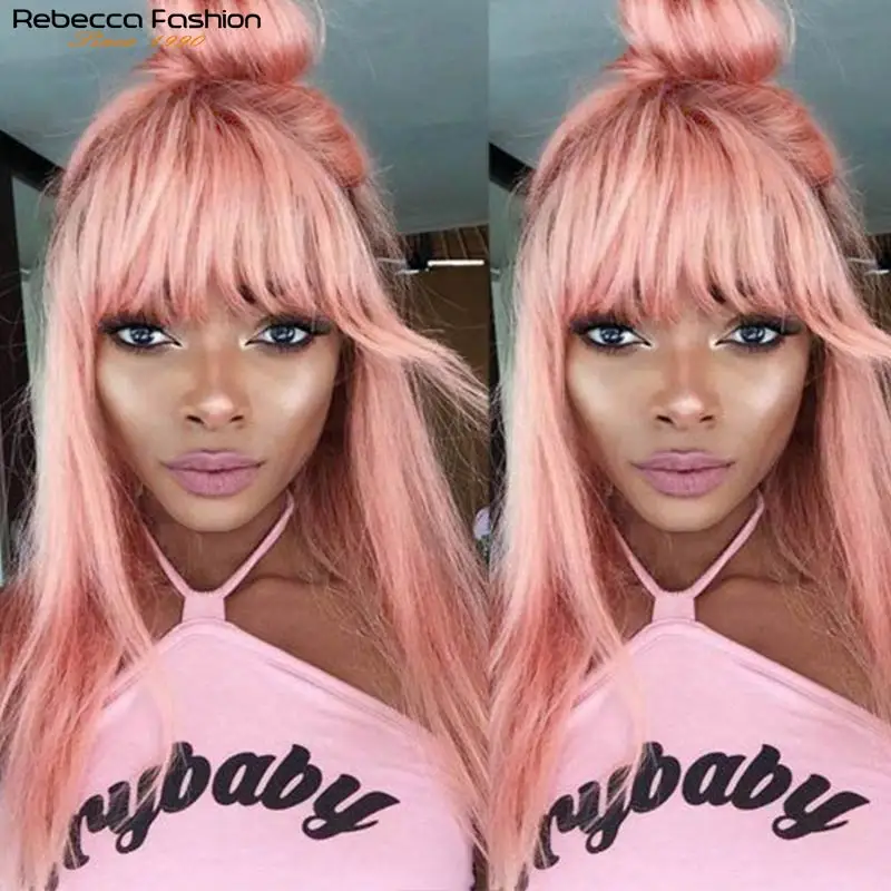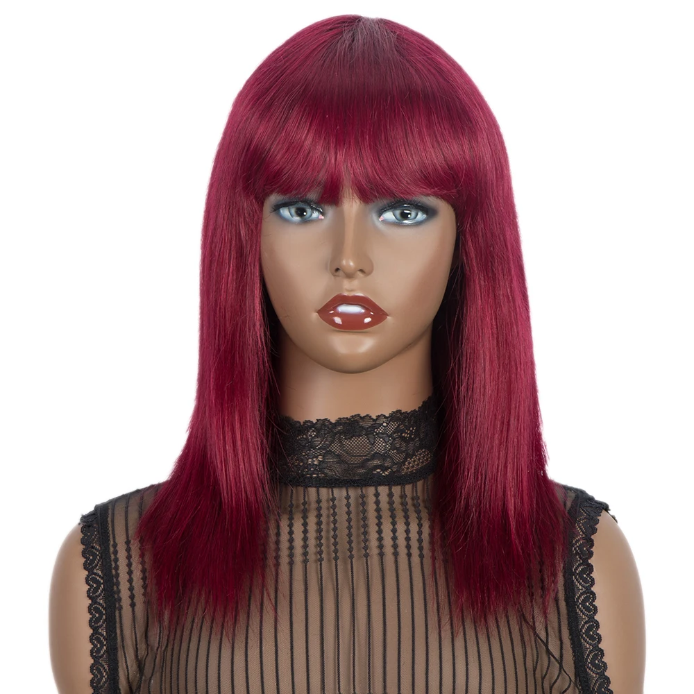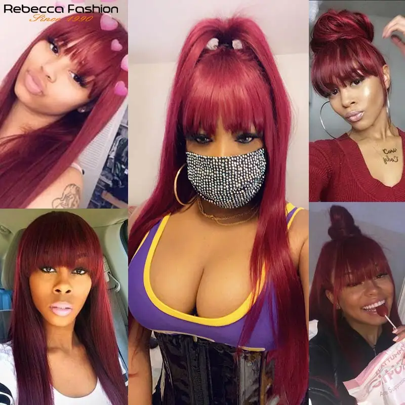 Парики из натуральных прямых волос Rebecca с челкой, парик с бахромой, окрашенные бразильские волосы Реми, Имбирно-бордовый, дешевый парик для косплея