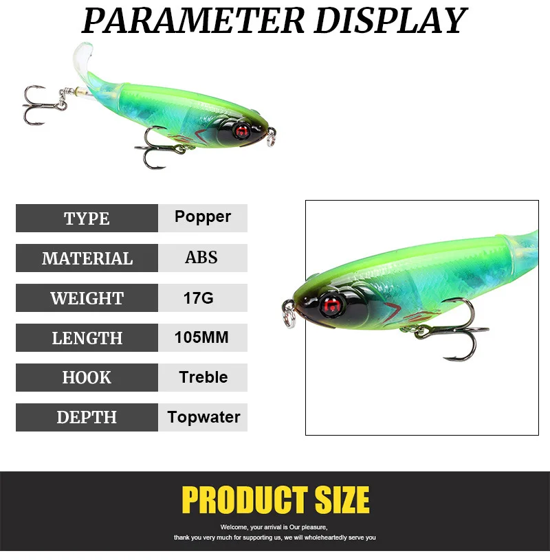 1 шт., Whopper Popper, Topwater, приманка для рыбалки, искусственная наживка, твердая наживка, мягкие вращающийся хвост, рыболовные снасти, Geer Pesca