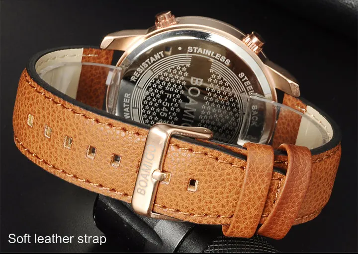 Часы мужские BOAMIGO, коричневые, водонепроницаемые, с несколькими часовыми поясами, хронографом, кожаным ремешком