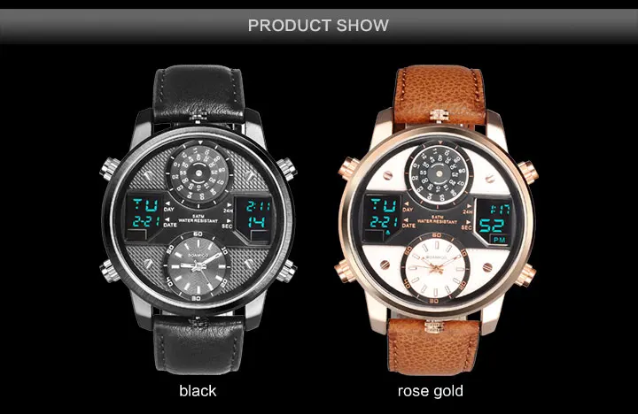 Мужские кварцевые часы с 3 часовыми поясами, светодиодные цифровые ...