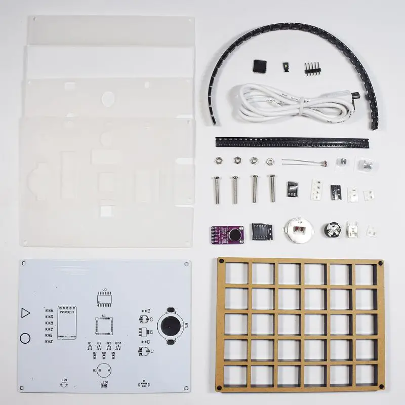 Это ультра-многоцветный DIY набор, который сочетает в себе часы, музыкальный спектр, светодиодный aurora, светодиодный artboard и светодиодный квадраты случайного цвета. Каждый тип функции может быть установлен в различных режимах отображения. Функция часов использует высокоточный чип часов DS3231, который может быть установлен для различных функций цветоградации и пользовательских функций цвета, с будильником, голосовым управлением, автоматической регулировкой яркости, обратный отсчет и так далее. В музыкальном спектре используется высококачественный модуль усиления микрофона MAX9814 для захвата звука, с тем чтобы достичь коллекции беспроводного звука и отображения спектра эффектов, может использоваться для различных устройств воспроизведения музыки. 6 Виды Аврора градиент функции, с каждым индивидуально управления светодиодный "большой площади" цветной светодиодный, для того чтобы сформировать различные цветовые градиенты и светодиодный дыхательные эффекты. Светодиодный палитра может быть настроена в разных цветах. Каждый квадрат может быть установлен в 17 различных цветах. Это «электронная доска для рисования» для детей, чтобы расширить их мышление. Светодиодный квадрат случайного цвета каждый светодиодный квадрат автоматически изменяет случайные цвета, 30 светодиодный квадратов объединяются в тысячи цветовых квадратов, в результате чего вы производите Красочные DIY.
