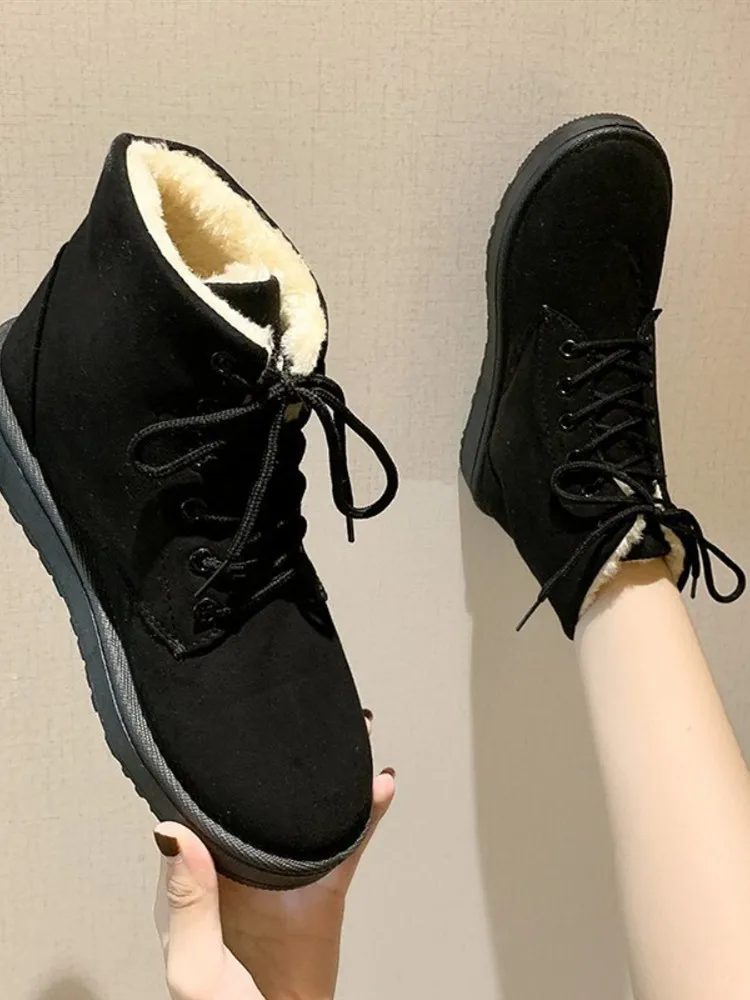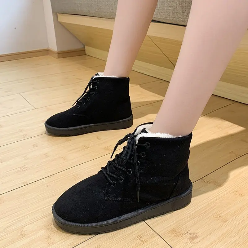 Женские ботинки, зимняя обувь, однотонные ботильоны на шнуровке, по...