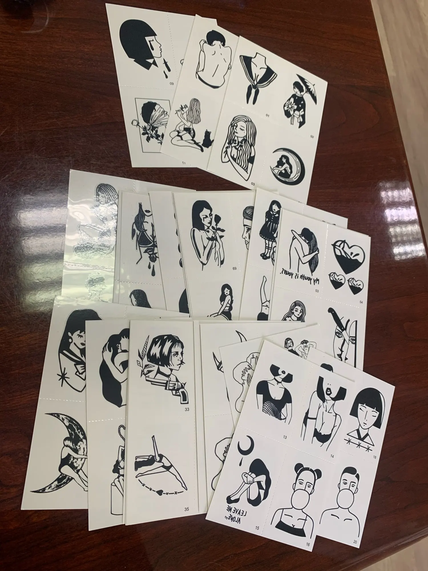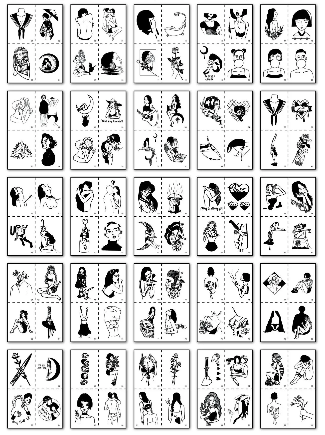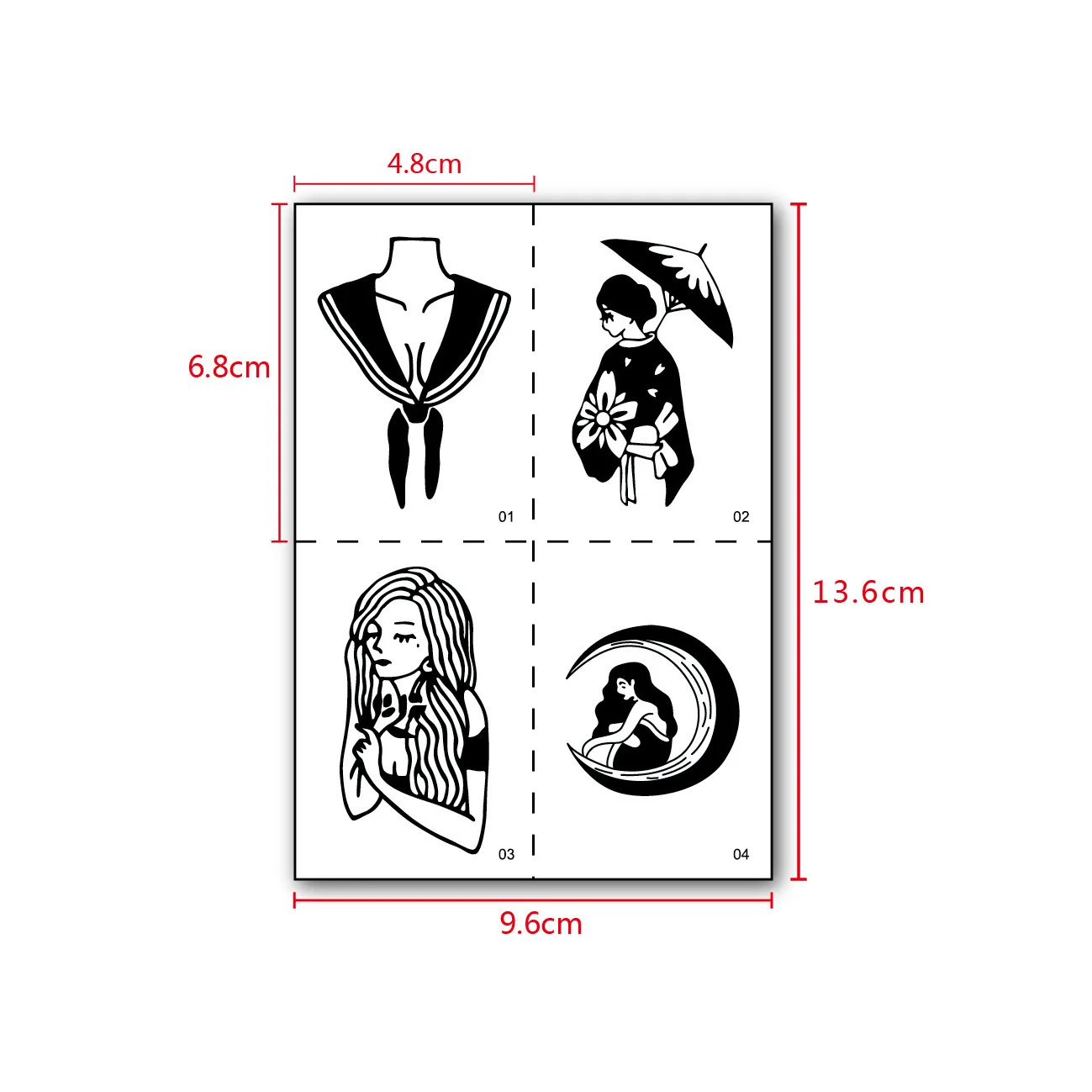 100 дизайнов, черные Временные татуировки для мужчин и женщин, искусственные водостойкие тату-наклейки для боди-арта