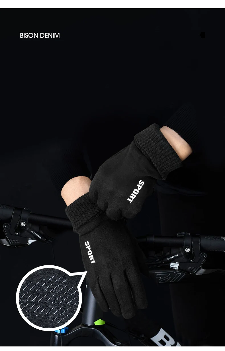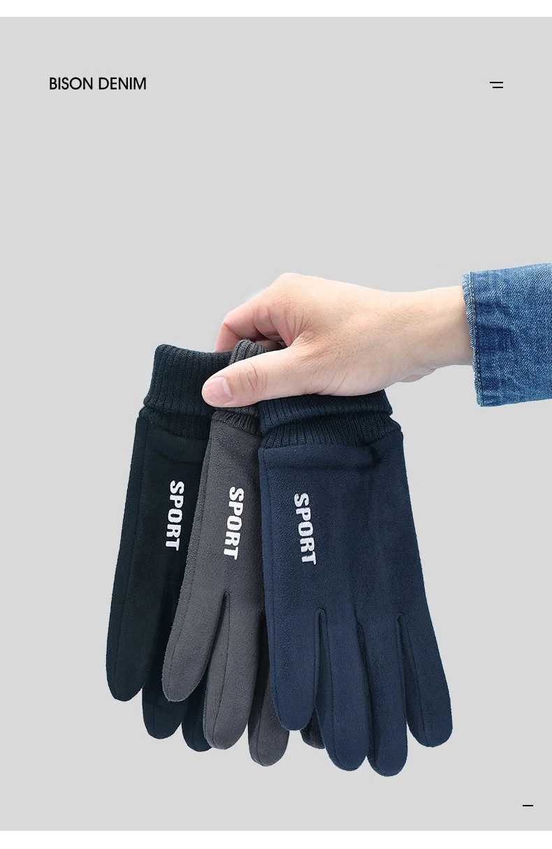 Мужские зимние перчатки BISON DENIM, теплые утепленные хлопковые перчатки с сенсорным экраном, ветрозащитные зимние перчатки для езды на мотоцикле, S063