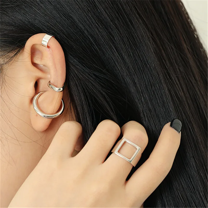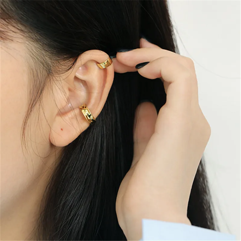 Серебро 925 пробы, корейский стиль, простой глянцевый зажим для ушей, для женщин, без пирсинга, в стиле панк, хип-хоп, модные вечерние ювелирные изделия