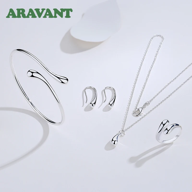 Набор женских свадебных ювелирных изделий из серебра 925 пробы, серьги в форме капли воды, кольцо, ожерелье