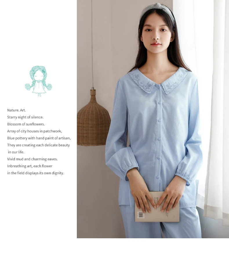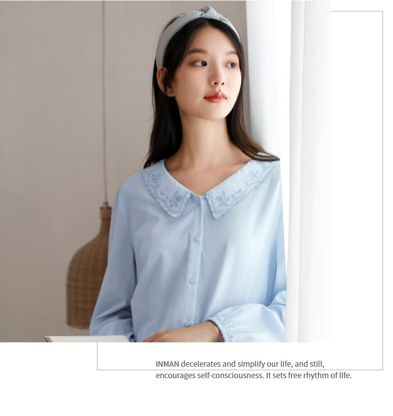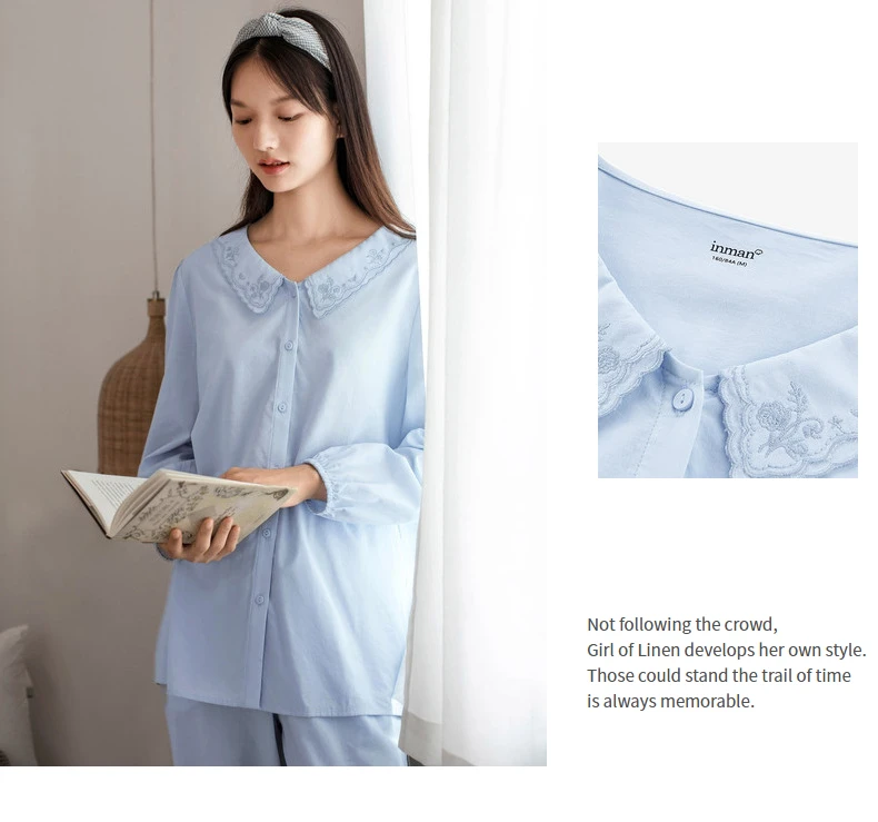 INMANвесенне-осенняя Домашняя одежда милая детская пижама с воротником, комплект из 2 предметов, женская рубашка и штаны для отдыха