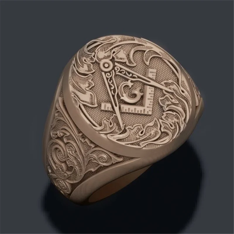Кольцо мужское в стиле ретро с буквой Ag и рисунком масоны, металли...