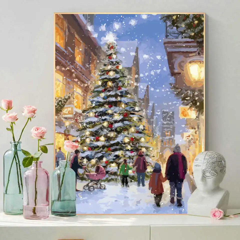 AZQSD краска по номеру Рождественская елка холст краски наборы картины масляная краска ing по номерам уличная ручная краска ed домашний Декор подарок