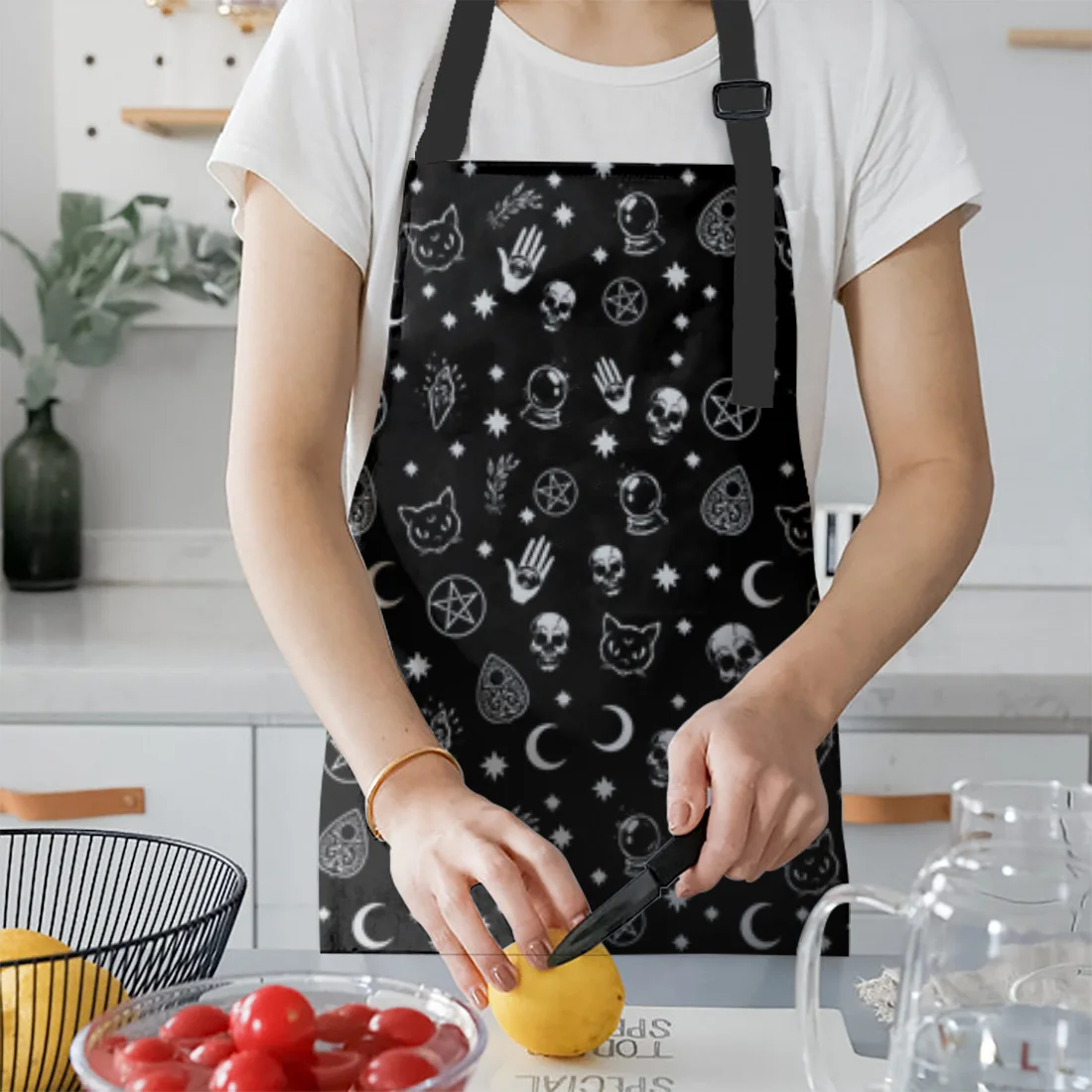 Набор фартуков для кухни, Черный Фартук с изображением черепа ведьмы, Луны, прихватки для готовки, фартуки для женщин и детей, аксессуары для выпечки