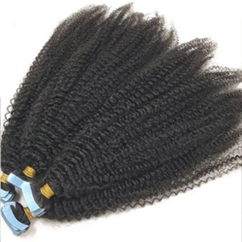 4B 4C кудрявые волосы для наращивания на ленте, накладные волосы из кожи, невидимые монгольские афро кудрявые волосы черного цвета, 40 шт.100 г