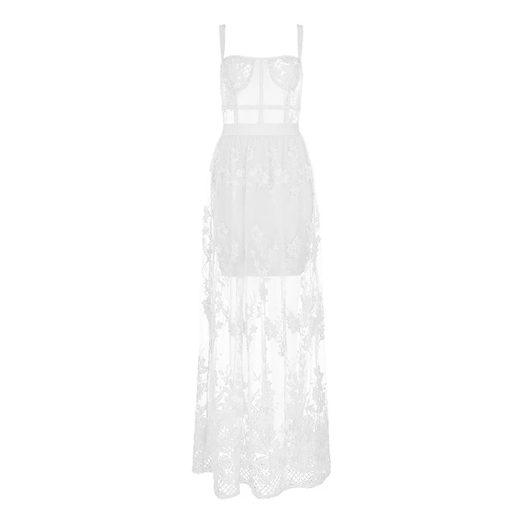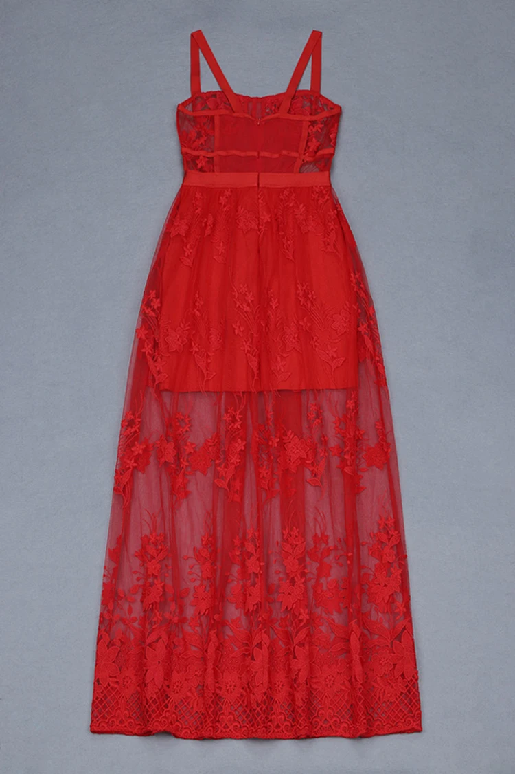 Новинка 2022, Красное Кружевное Бандажное платье, женское длинное элегантное облегающее вечернее платье без рукавов с вырезами для шоу и вечеринок
