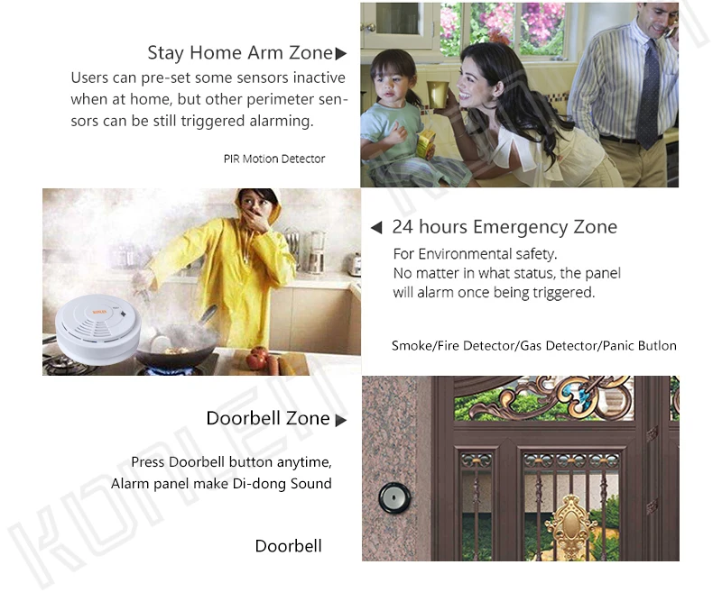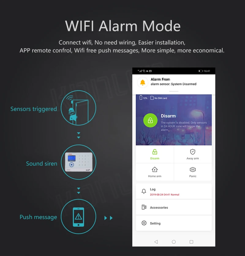 1. H26 панель будет нажимать уведомление о тревоге на ваш android или ios телефон через WIFI, когда кто-то сломается в вашем доме, в то же время звуковая Сирена.