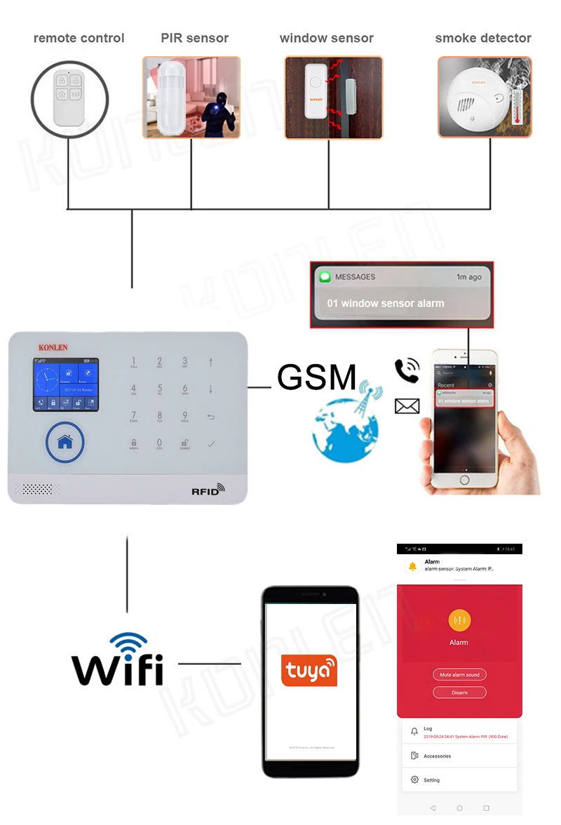 Номер модели: kl-h36 Tuya Smart WIFI GSM домашняя охранная сигнализация(Новая версия)