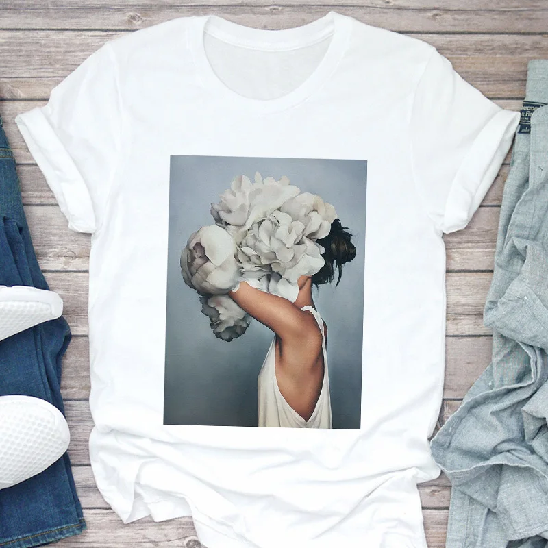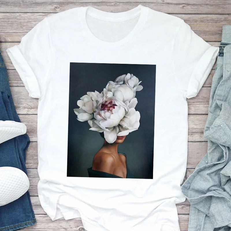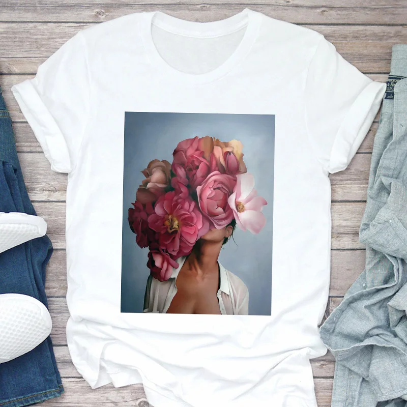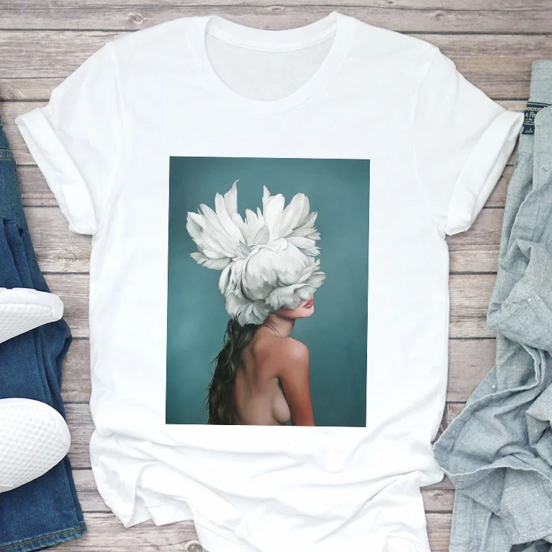 Новая женская футболка Harajuku Aesthetics, сексуальные топы с короткими рукавами и принтом перьев с цветочным принтом и футболки, модная повседневная футболка, женская одежда