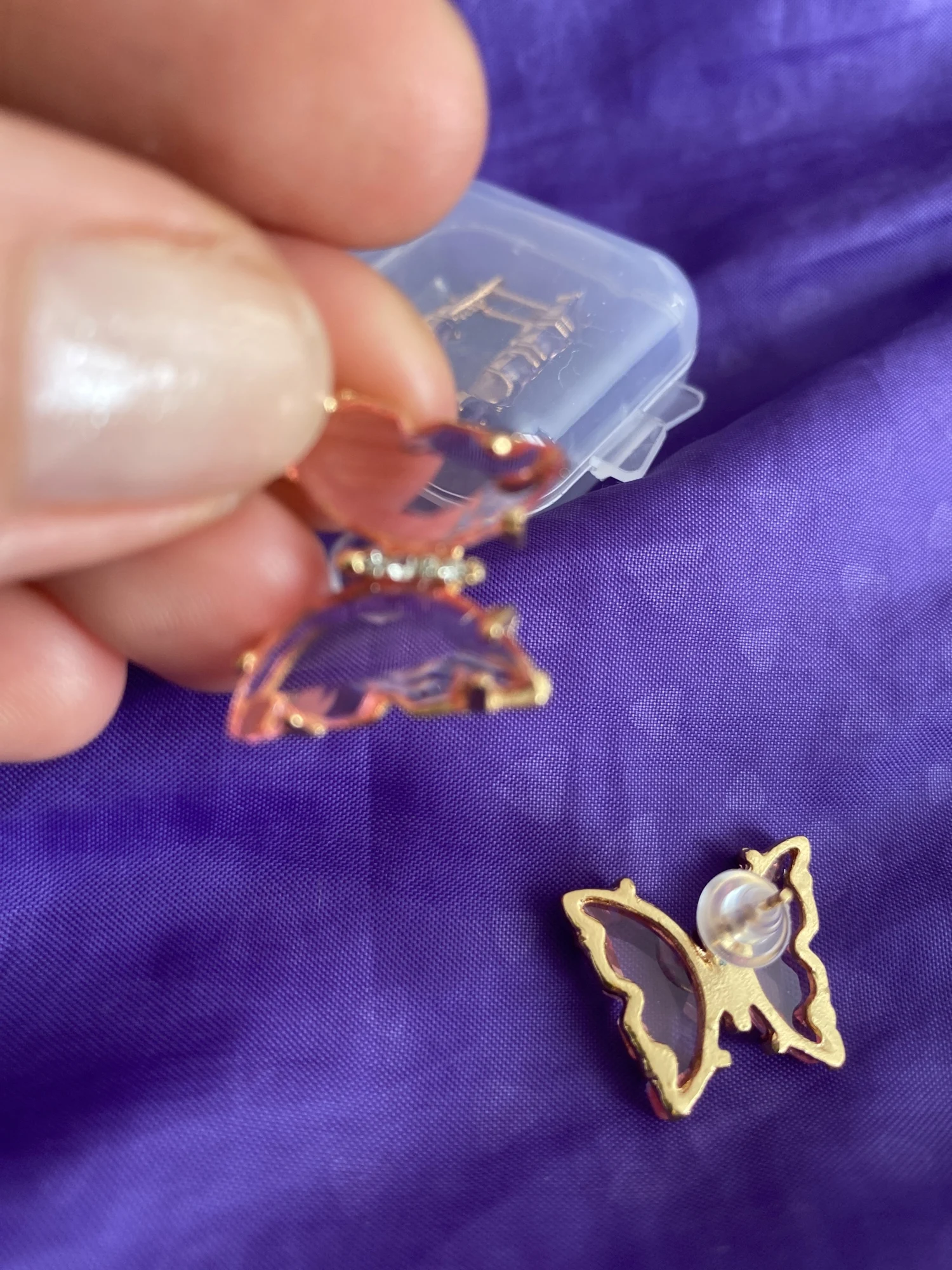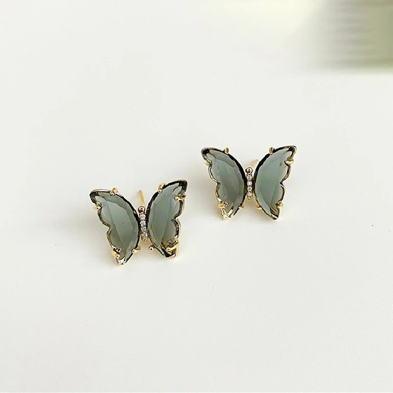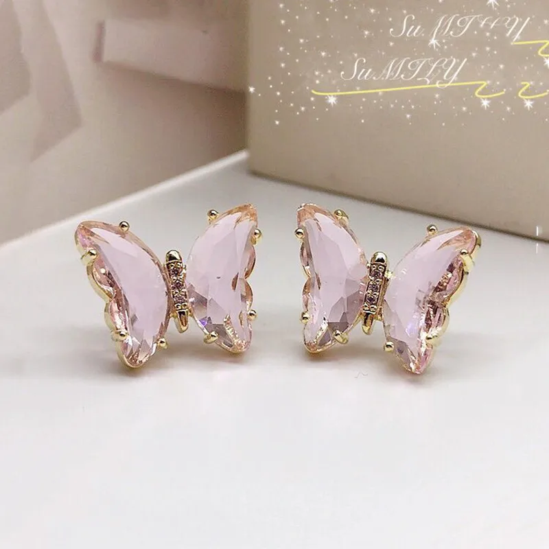 Новые аксессуары, элегантные стеклянные серьги-гвоздики с бабочками для женщин, простые Стильные серьги ярких цветов с насекомыми