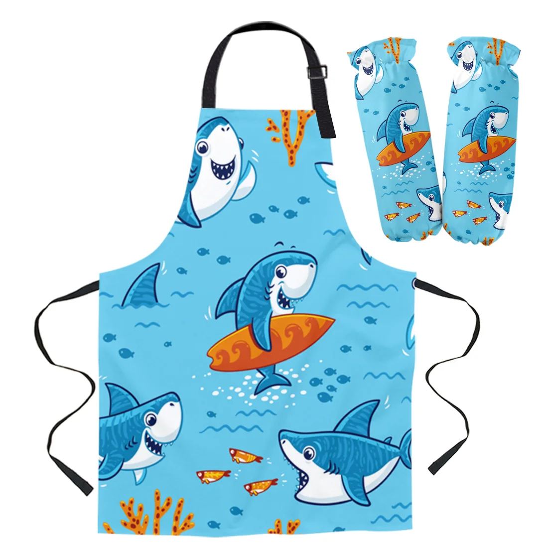 Синяя Акула мультяшный Фартук с нарукавниками для духовки, перчатки для приготовления пищи, Кухонные фартуки для женщин и детей