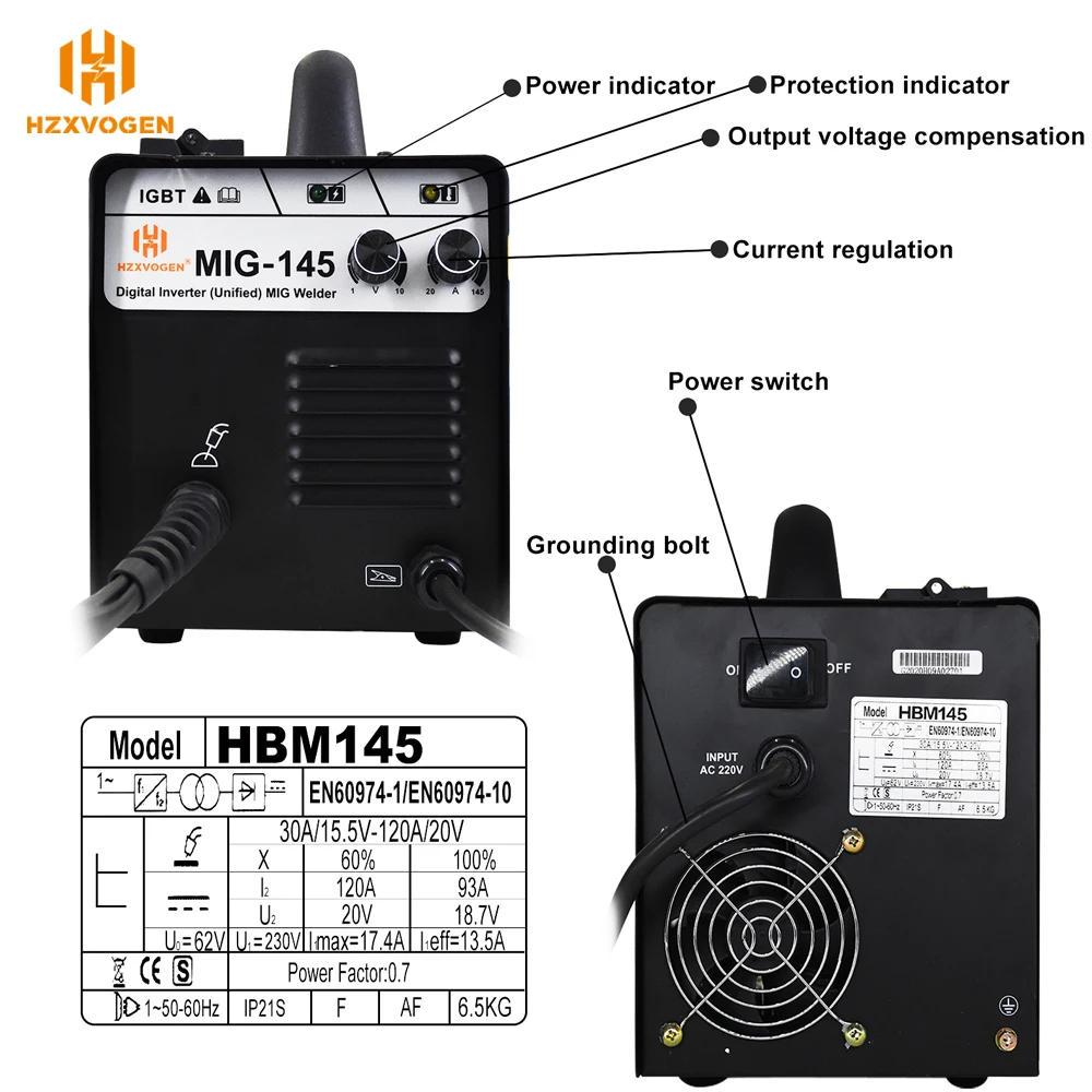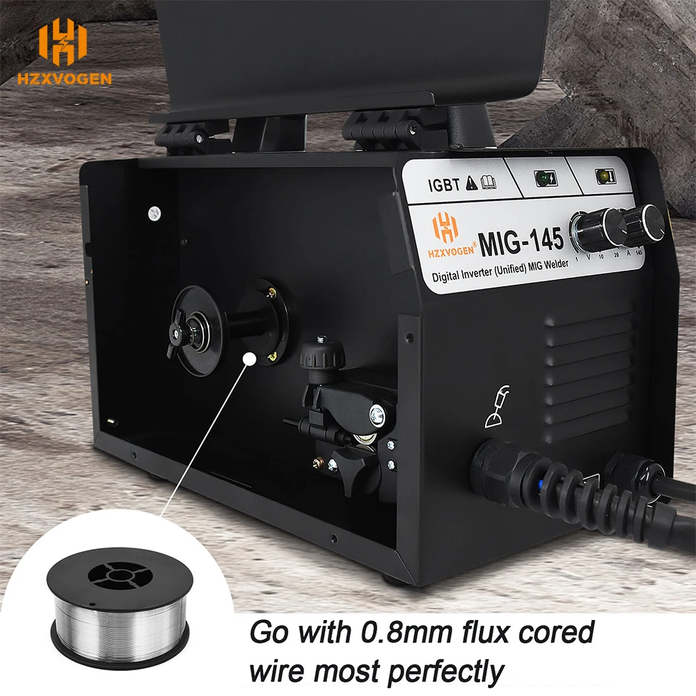 Сварочный аппарат HZXVOGEN Mig MIG145, полуавтоматический сварочный аппарат без газа, с флюсовой сердцевиной 2200,6 мм для пайки железа, 0,8 в