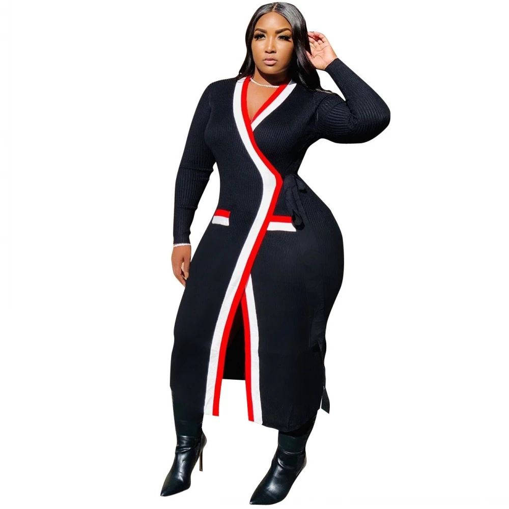 Зимнее вязаное длинное пальто, африканские платья для женщин 2020, Новое поступление, Дашики, Полосатое платье с длинным рукавом, Повседневное платье в африканском стиле