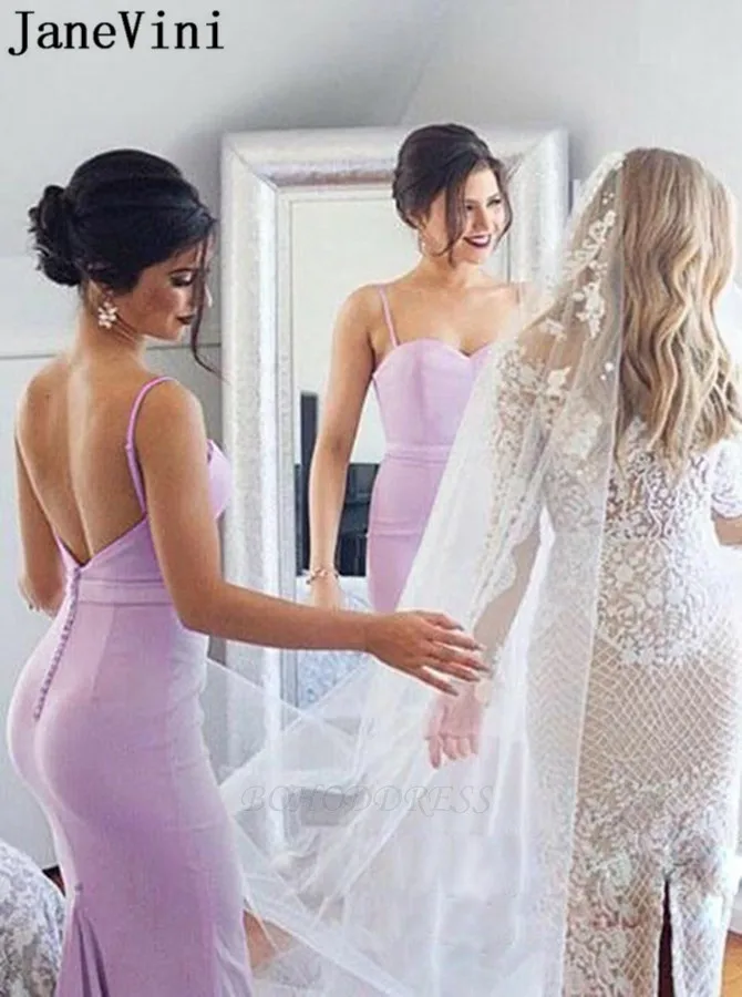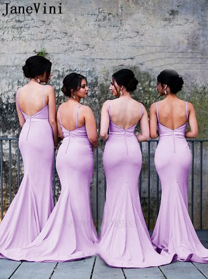 JaneVini Koszula Nocna, сиреневый атласное длинное платье-русалка, платья для невесты, 2021 Ropa, сексуальное платье подружки невесты с открытой спиной, праздничная одежда на пуговицах