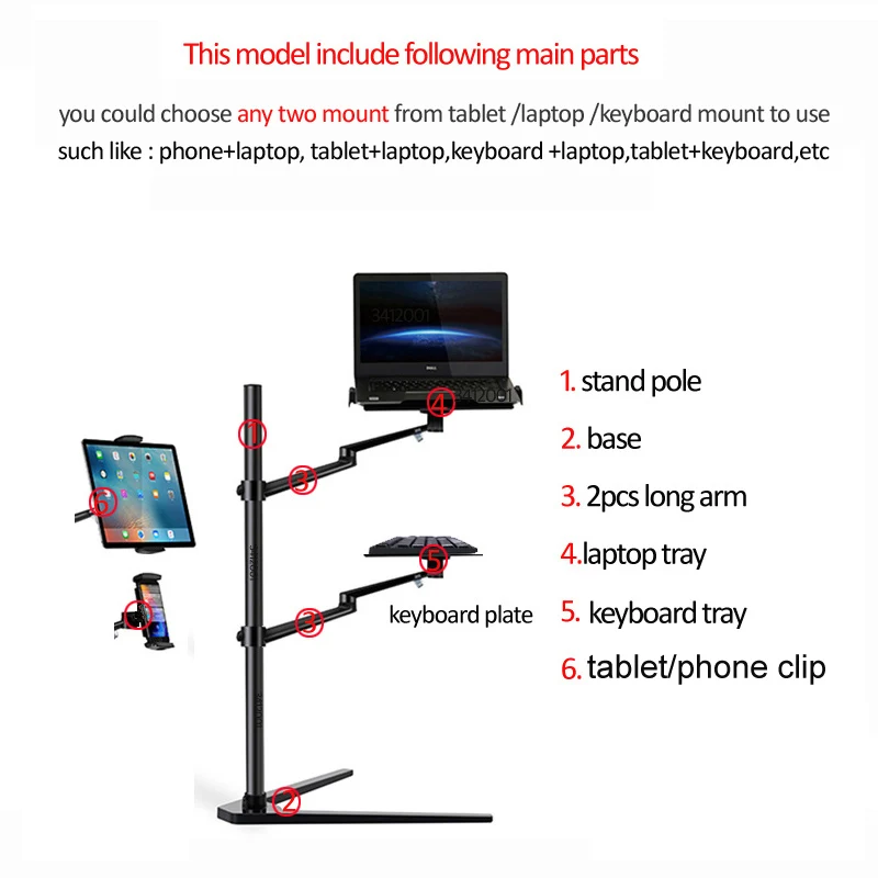 Многофункциональная компьютерная напольная подставка 3 в 1 для ноутбука, планшета, смартфона, с регулируемой высотойуглом наклона, с лотком для мыши, UP-88A