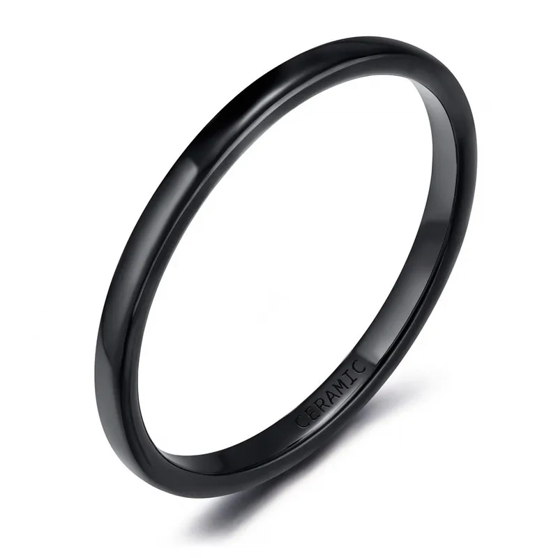 Eamti 2 мм полированные керамические кольца для женщин куполообразные черные тонкие обручальные кольца обручальные украшения бижутерия подарок другу оптовая продажа