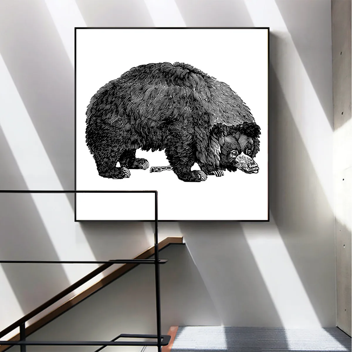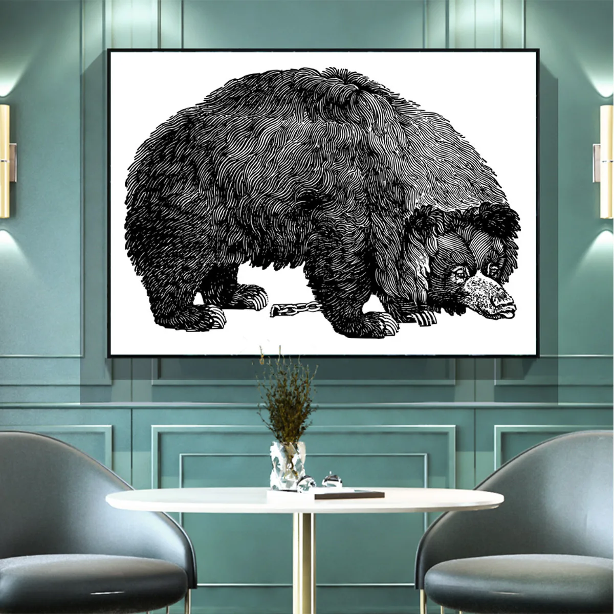 Медведь гризли, железная цепочка, попрощайтесь с клеткой, картина маслом, постер, печать на холсте, картина, настенное искусство, украшение для гостиной и дома