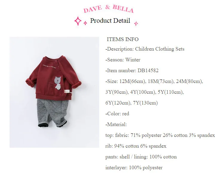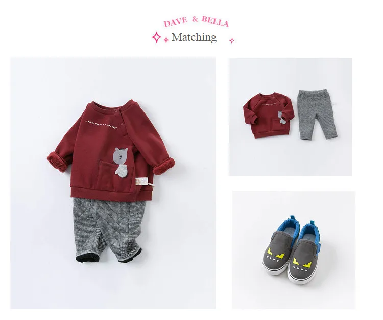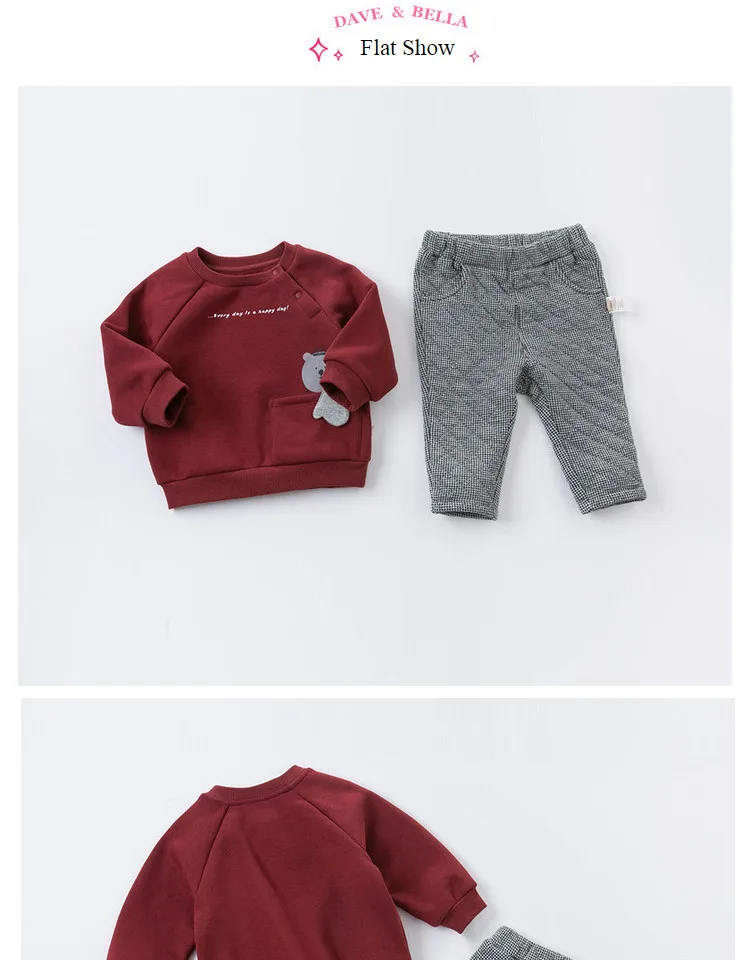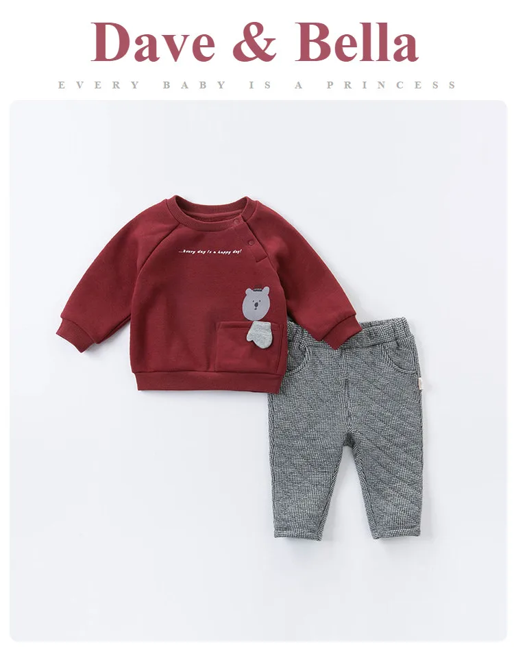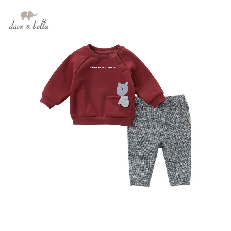 DB14582 dave bellaмодные зимние комплекты одежды с рисунком для маленьких мальчиков детские повседневные комплекты Детский костюм из 2 предметов