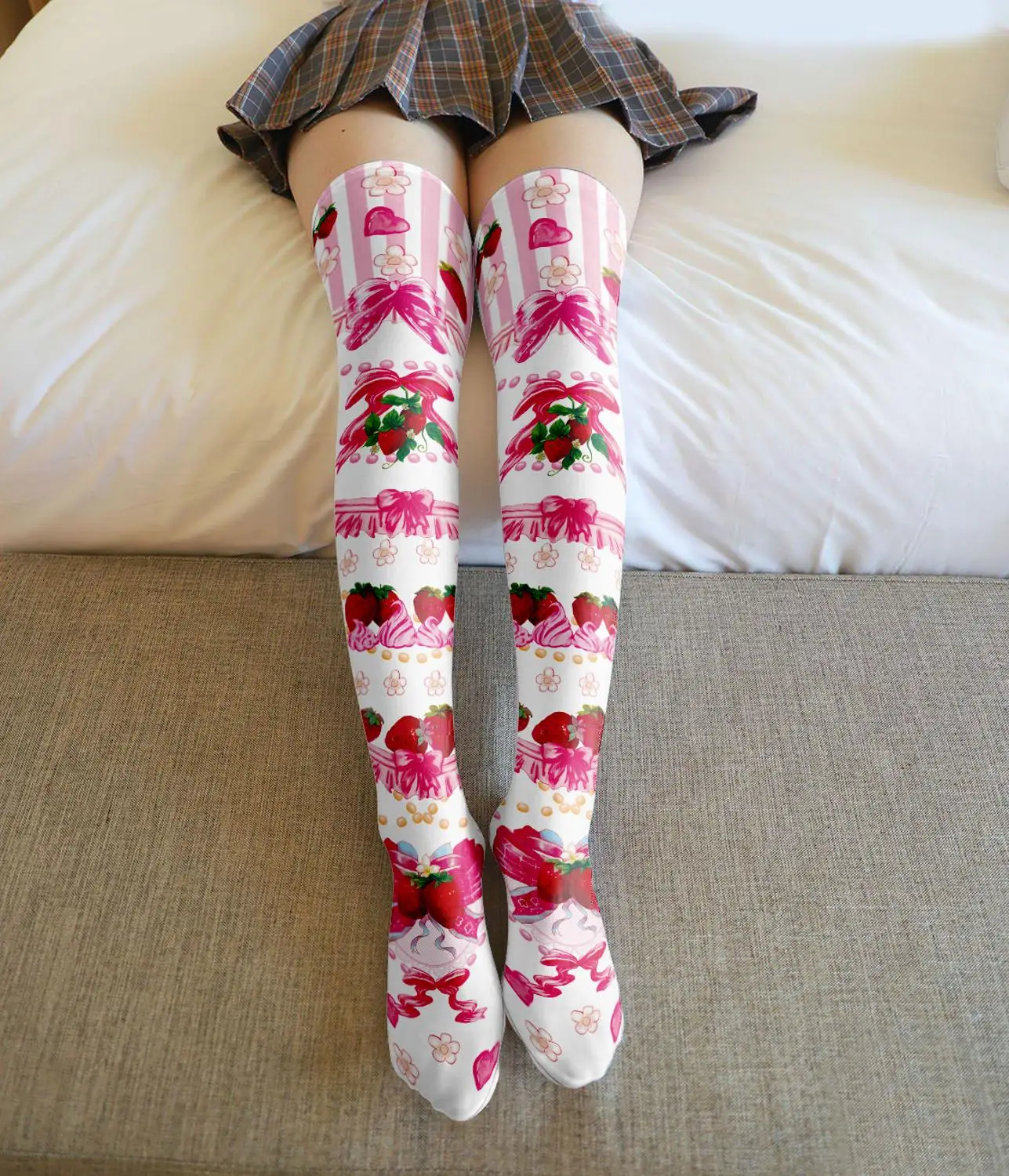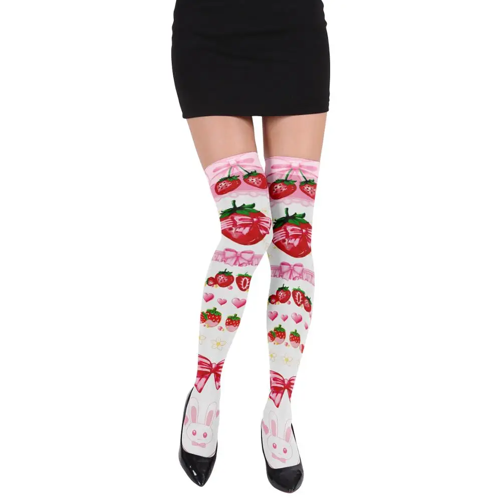 Модные женские пикантные чулки, милые красные шелковые чулки до колена в виде клубники