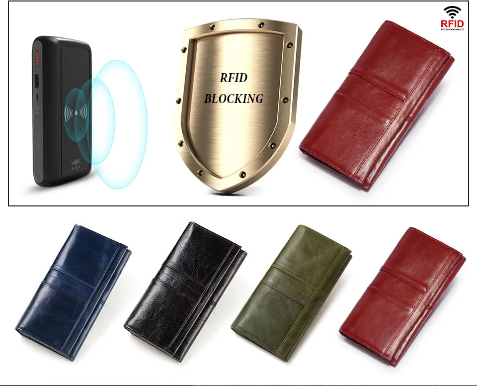 Женский Длинный кошелек из натуральной кожи, дамские клатчи с RFID-...