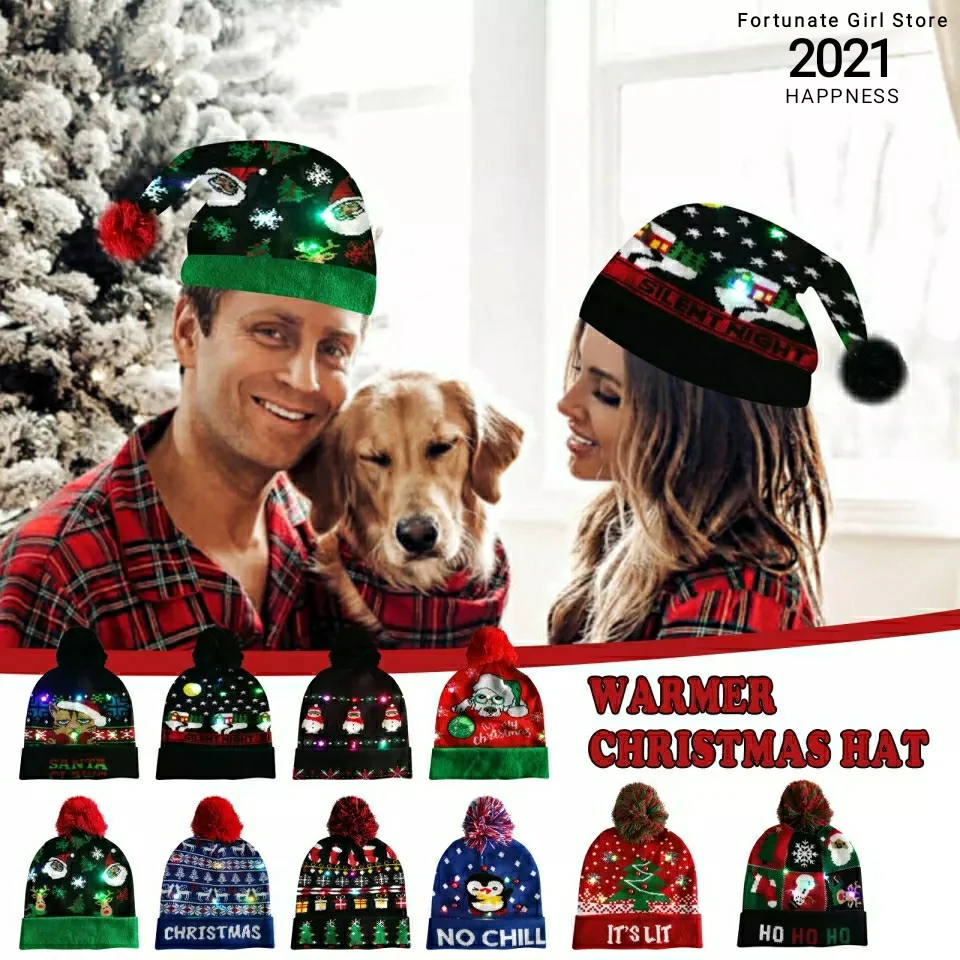 Новые рождественские костюмы для взрослых Детские трикотажные светодиодный светильник-Рождество Merry шляпы Рождество Санта-Клауса шапка светильник s мигающие колпаки, детская шапка, рождественский подарок