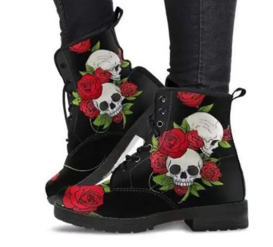 Женские ботинки с цифровым принтом, осенние женские высокие ботинки, женская обувь из искусственной кожи в британском стиле, 2021