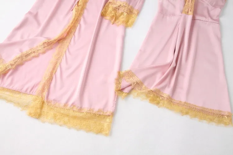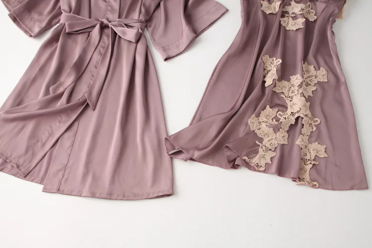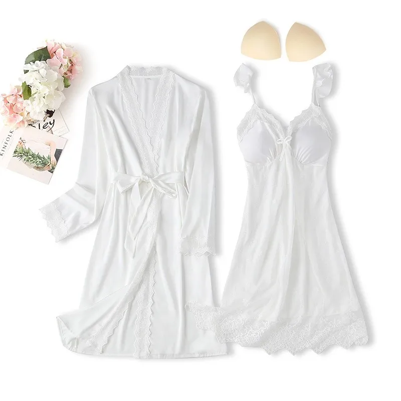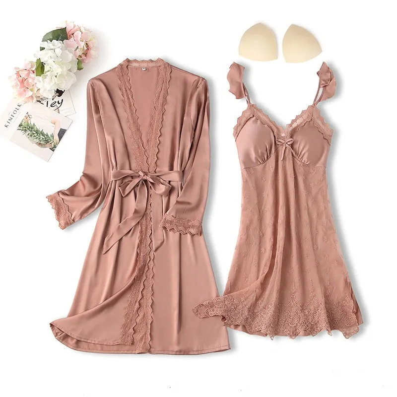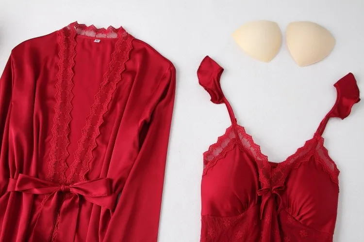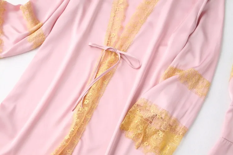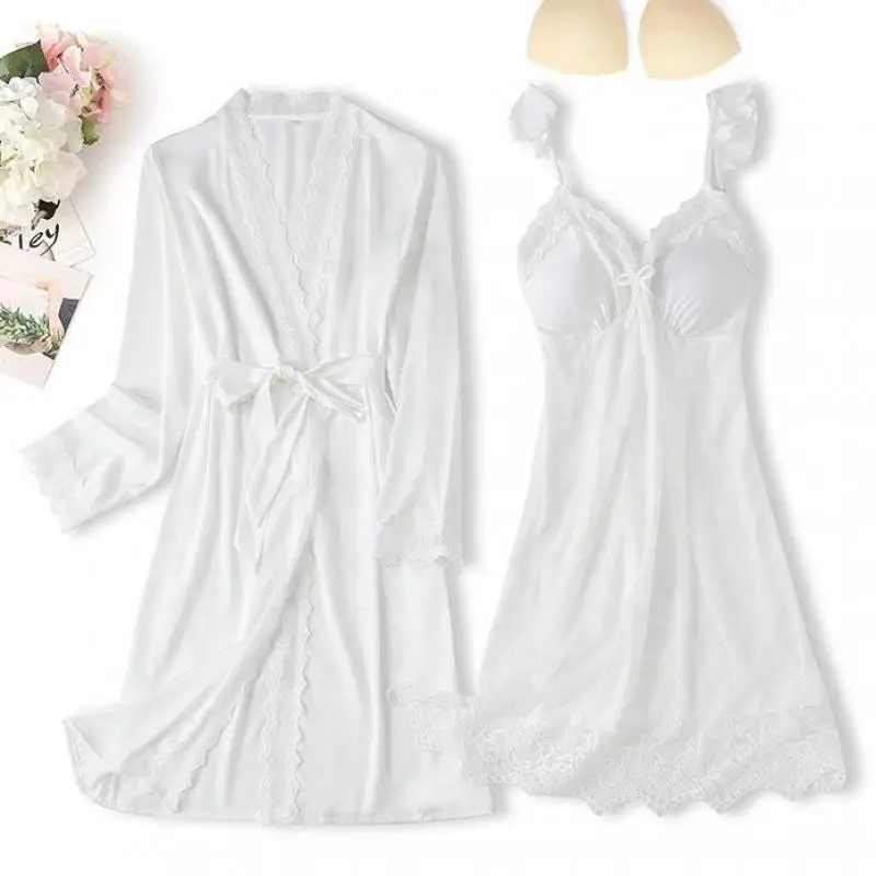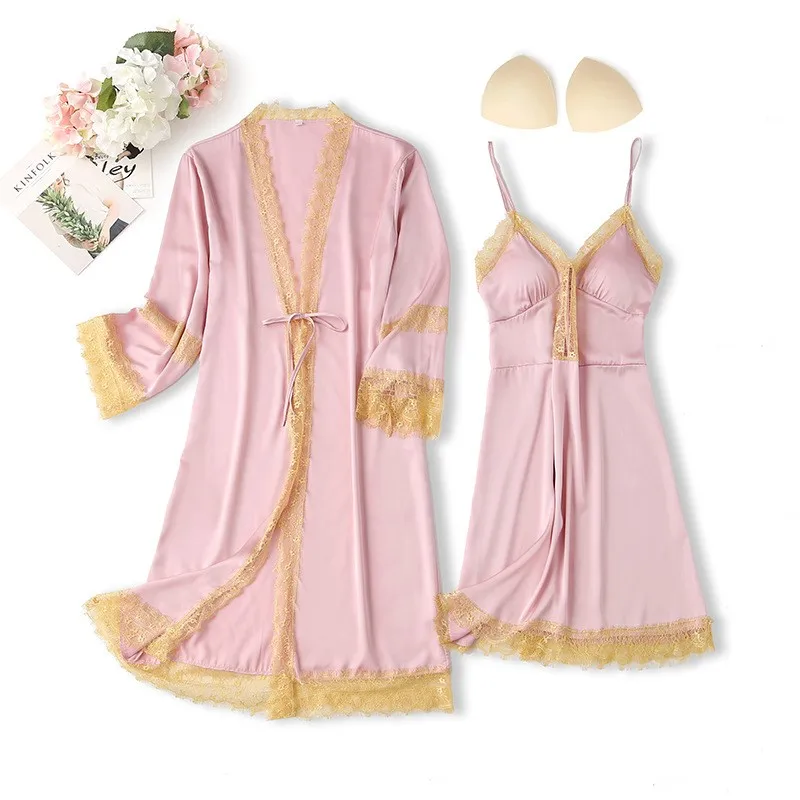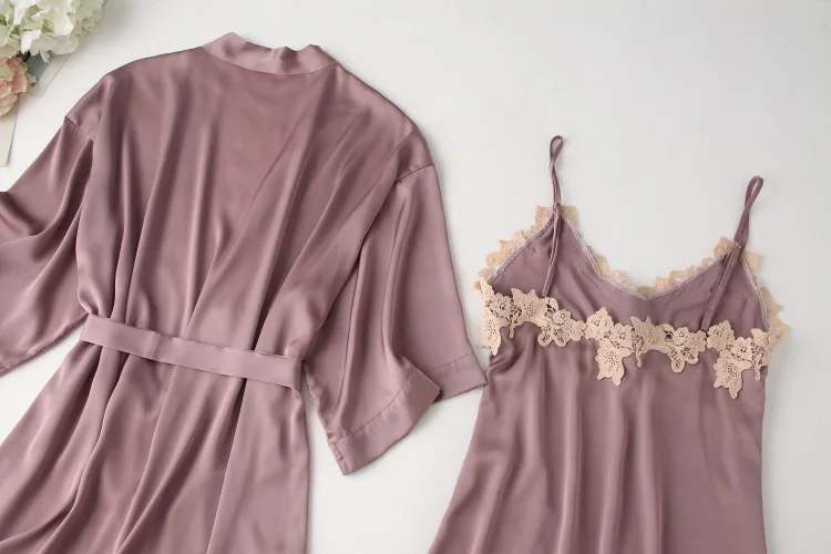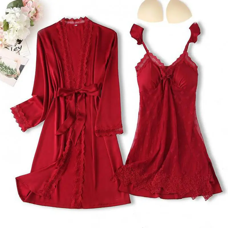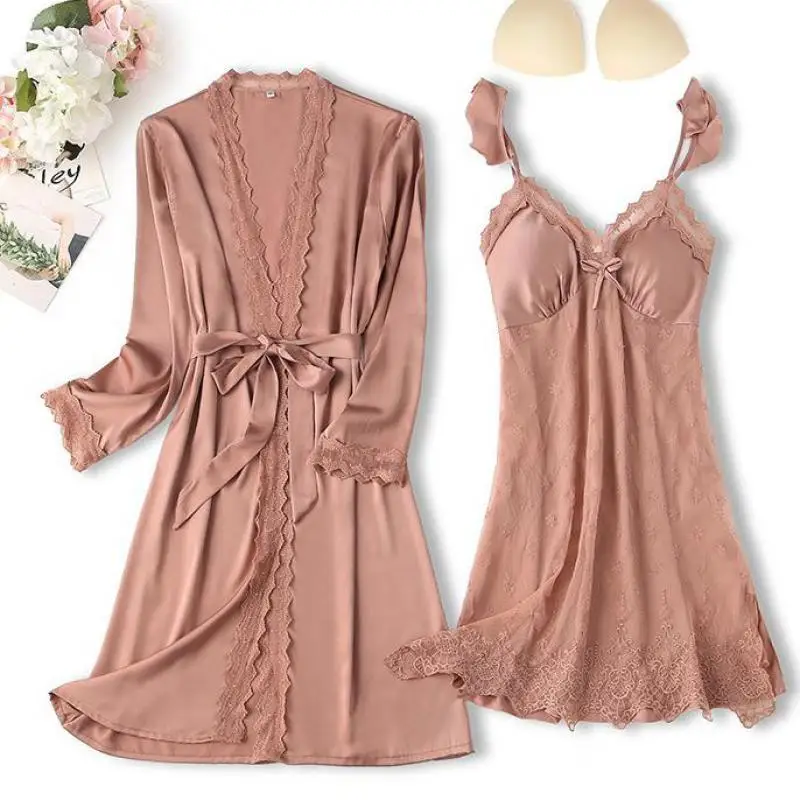 Комплект ночной одежды женский атласный, одежда для сна, повседневный халат-кимоно, пикантное нижнее белье, шелковая Свободная Домашняя одежда, на лето