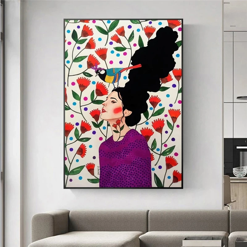 Отзыв о товаре Скандинавский портрет, холст, искусство, холст, плакаты и принты, абстрактная девушка с рыбой, настенные картины, декор комнаты от пользователя V***a