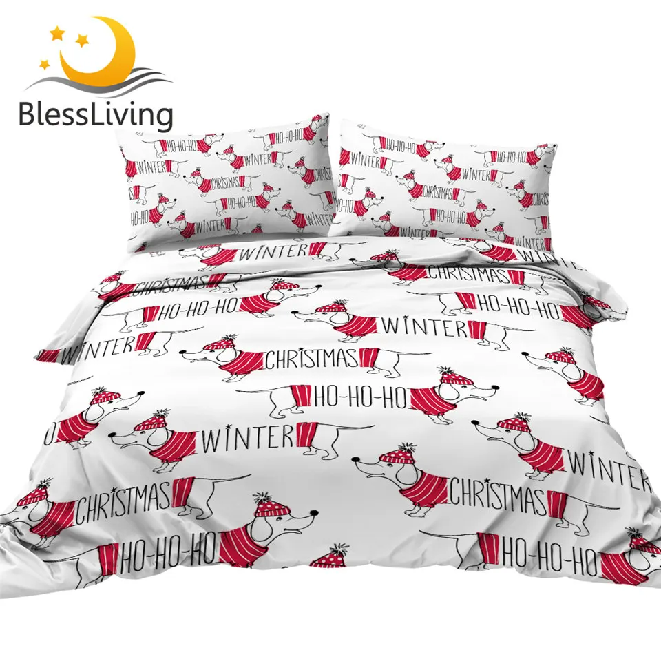 Рождественский комплект с пододеяльником, одеялом, таксой, покрывалом, милой собакой, красным и белым покрывалом, Комплект постельного белья с мультяшным щенком, Прямая поставка