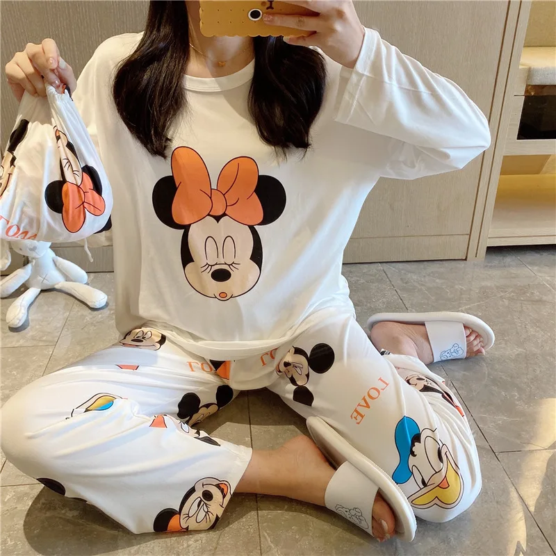 Пижама женская с принтом маргариток Disney, милая пижама с длинным ...
