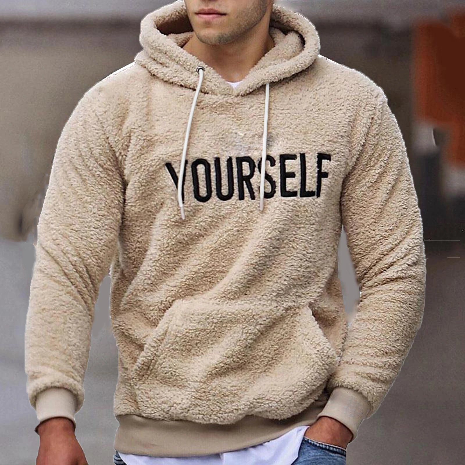 Свитшот мужской шерстяной с капюшоном, теплая кофта с надписью, пуловер с капюшоном, с карманом кенгуру, флисовый свитшот, Осень-зима