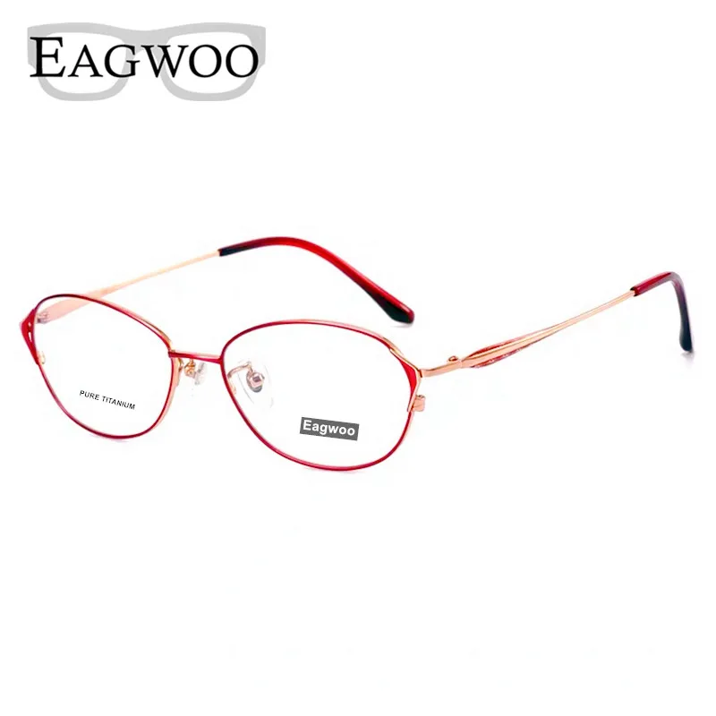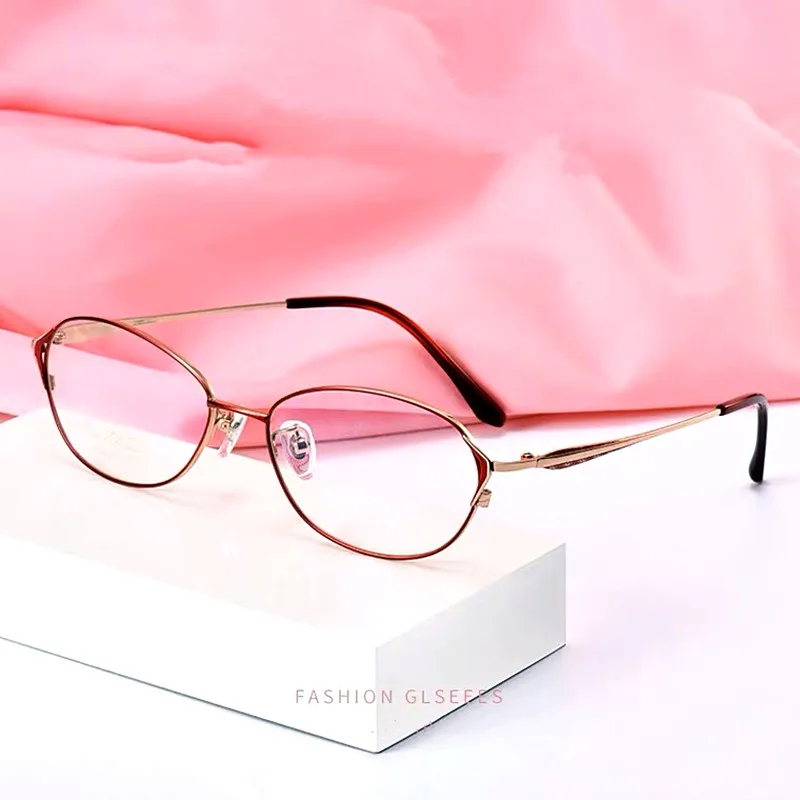 Женские очки из чистого титана, дизайнерские круглые красные очки в овальной форме, элегантные очки розового и золотого цвета