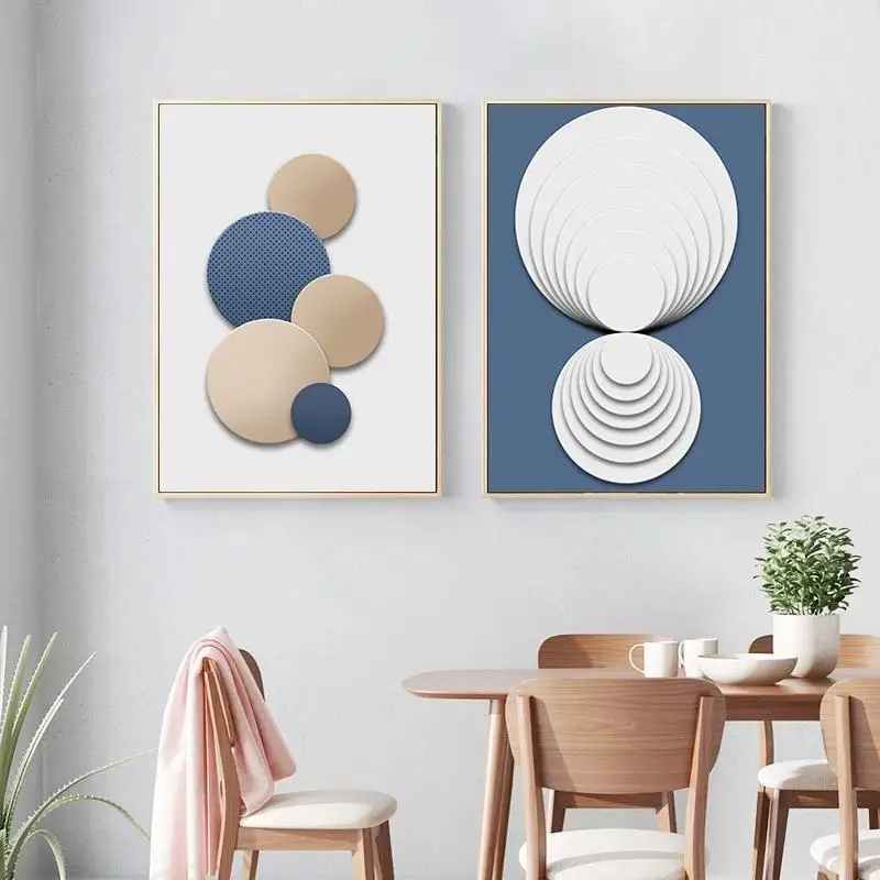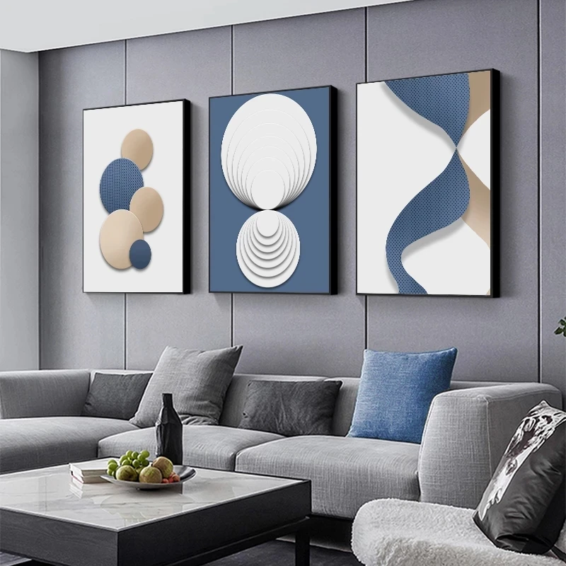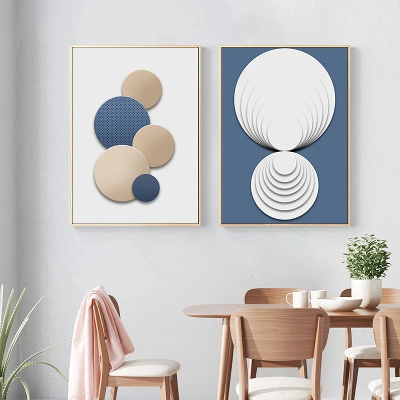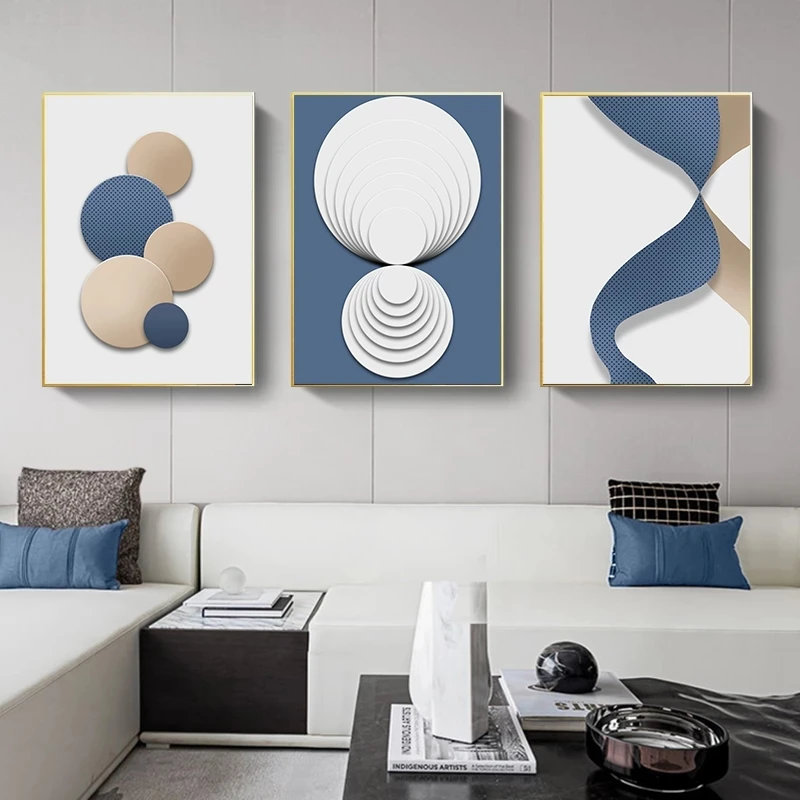 Абстрактная Настенная картина синий белый золотой круг и Толстая линия геометрический постер Картина на холсте современный Декор для дома в скандинавском стиле WallArt