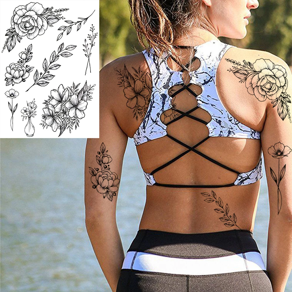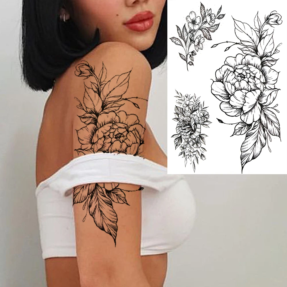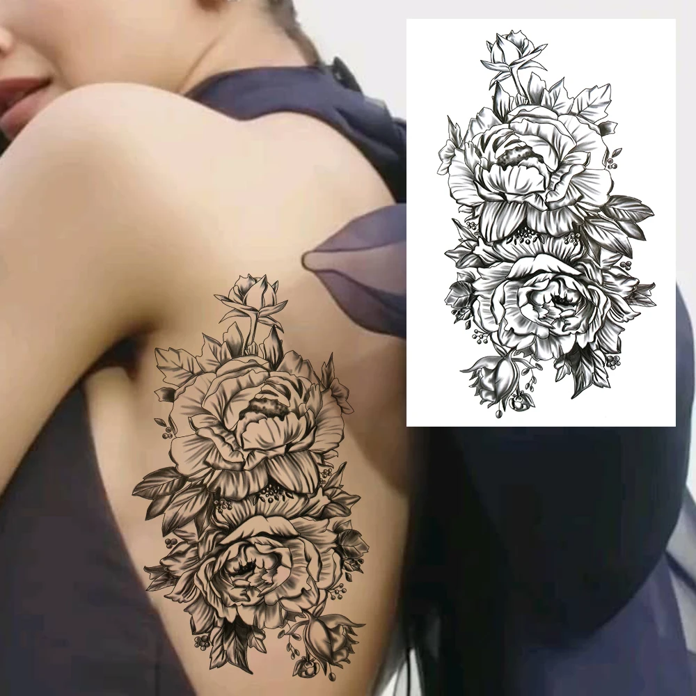 Большой цветок пиона, луна, временные татуировки для женщин и девушек, реалистичные листья, флора, 3D Искусственные искусственные татуировки для бедер