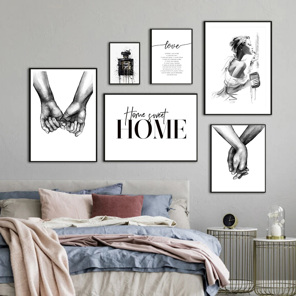 Черно-белая Картина на холсте с надписью Love держащие руки, настен...