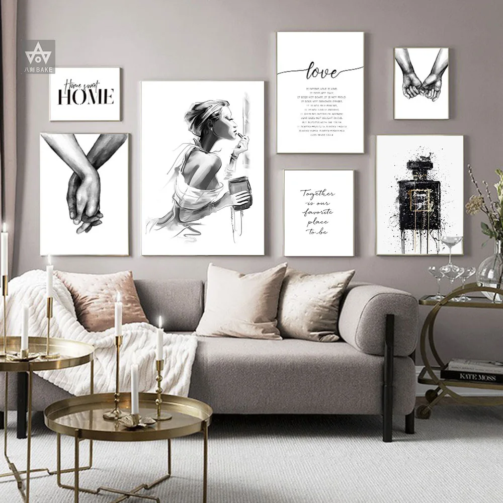 Скандинавский черно-белый наплечный Поцелуй Ручная роспись холст плакат минималистичный принт Любовь картина с цитатами картина для декора гостиной