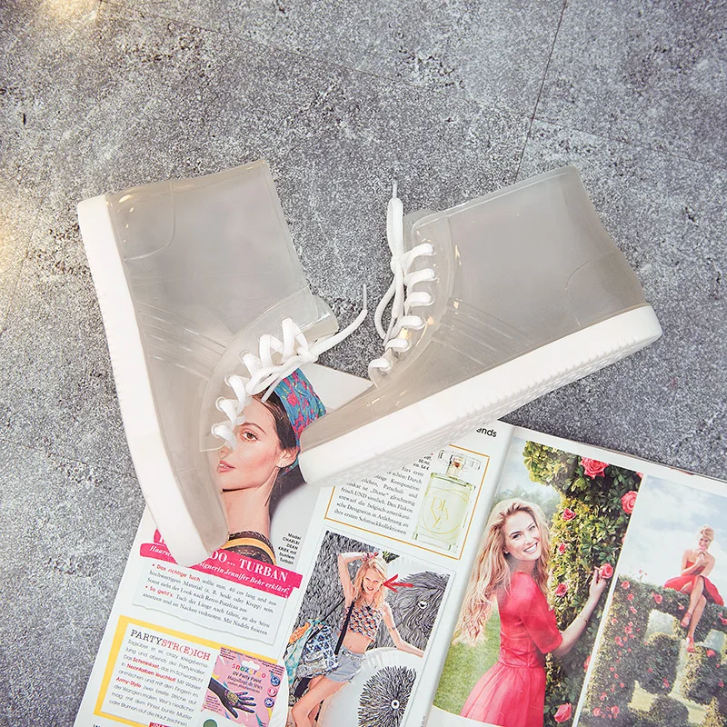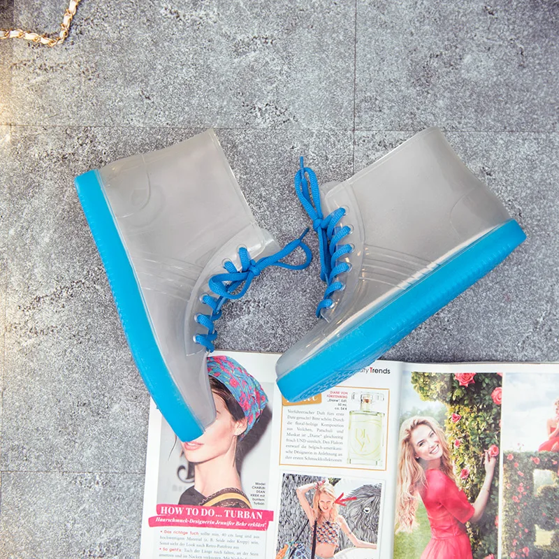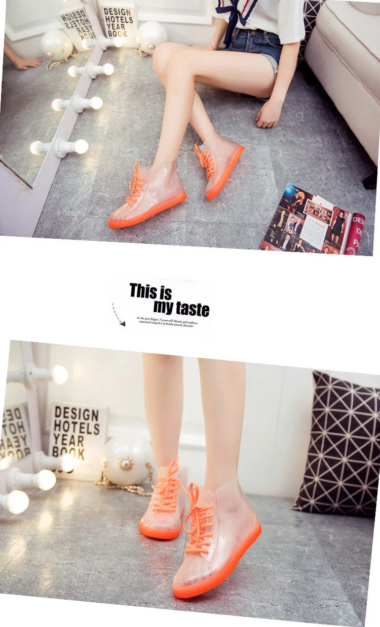 Женские Прозрачные ботинки на платформе, однотонные сапоги из ПВХ, на среднем каблуке, с прострочкой, модная обувь, 2020