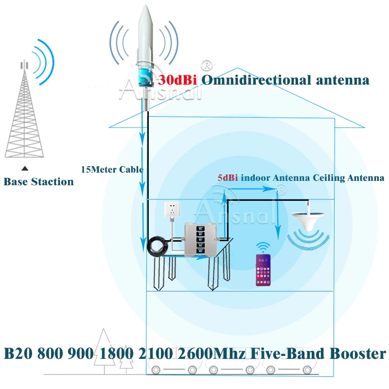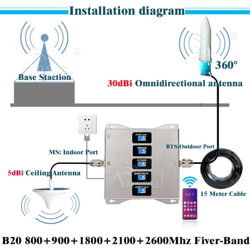 Frequency Band 1Five-Band B20 800 900 1800 2100 2600Mhz 4G Mobile Signal Booster