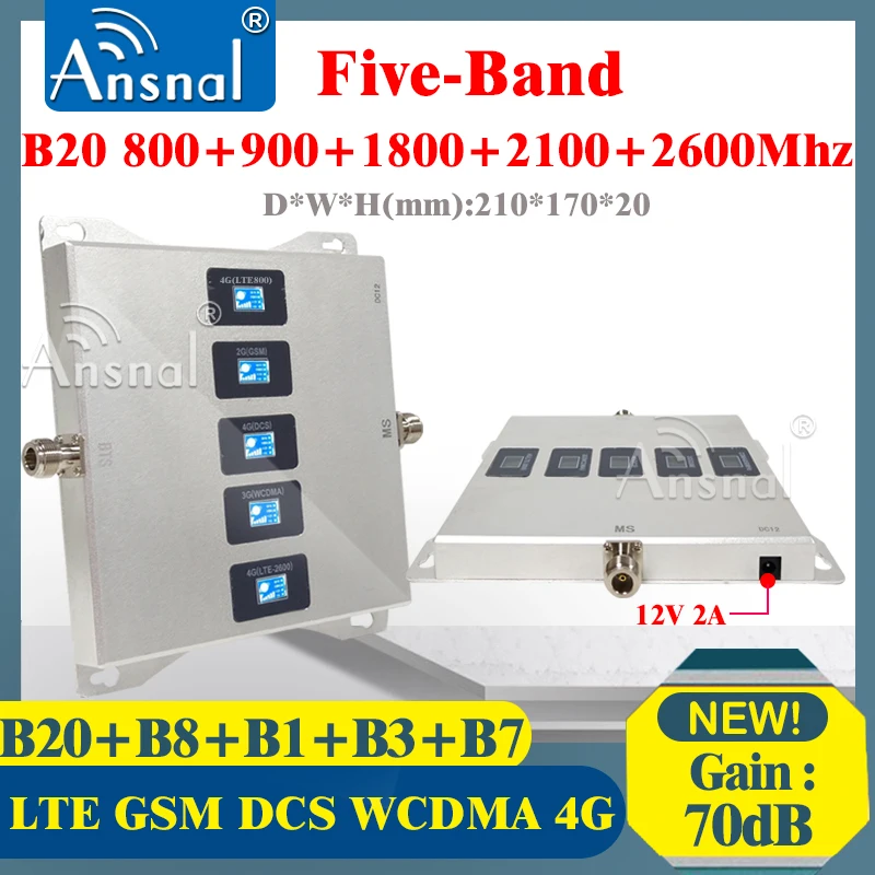 Пятидиапазонный сотовый усилитель B20 800 900 1800 2100 2600 МГц четырехдиапазонный сотовый телефон GSM ретранслятор 2g 3g 4g Мобильный усилитель сигнала LTE