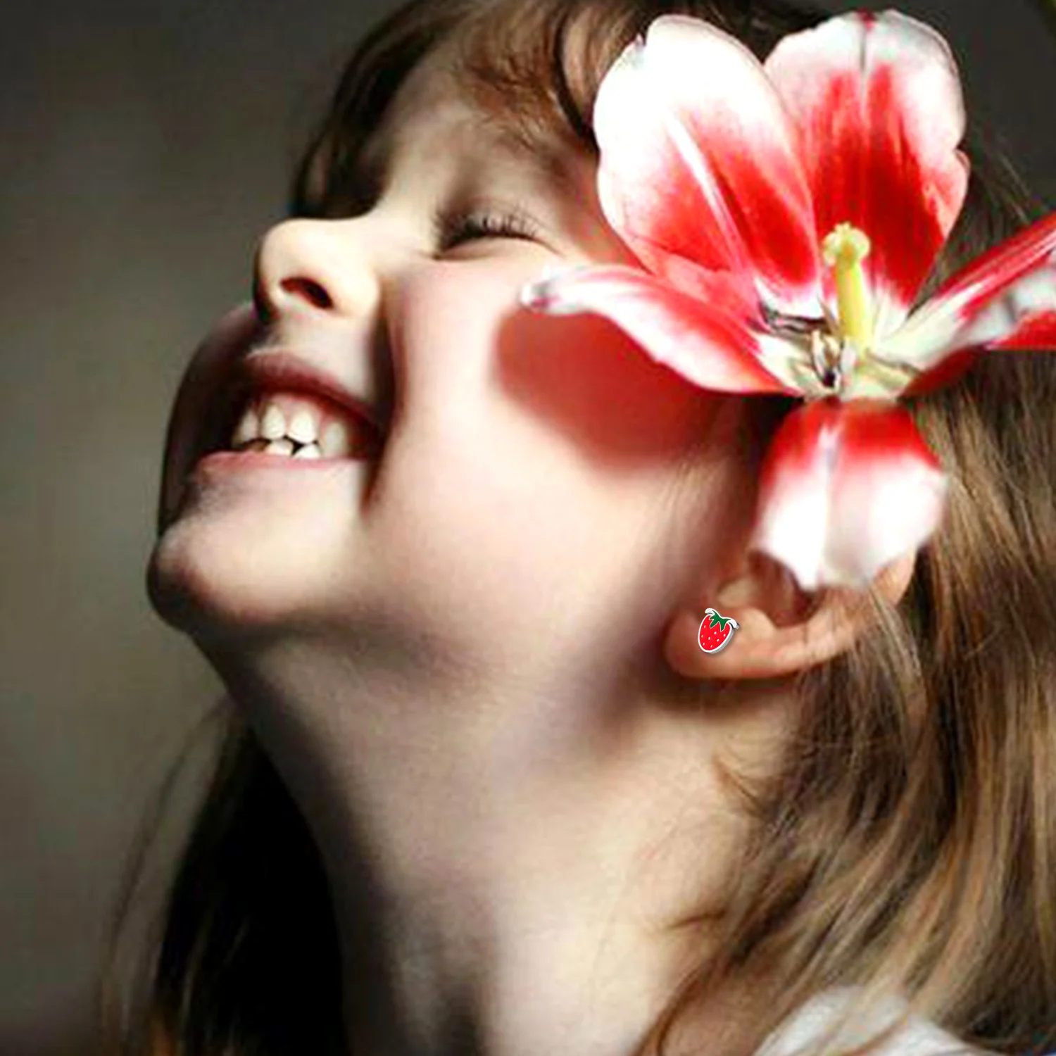 Роскошные безопасные серьги-гвоздики 2020, милые серьги для девочек с растениями, клубничками, радужными облаками, цветами, наборы сережек, рождественский подарок